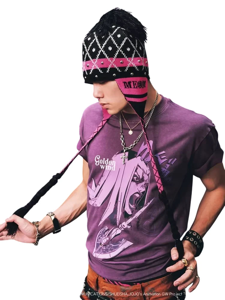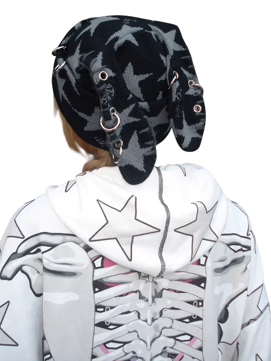 CFIERCE Skull Bunny Tie-Dye Knit Beanie with Ear Flaps
