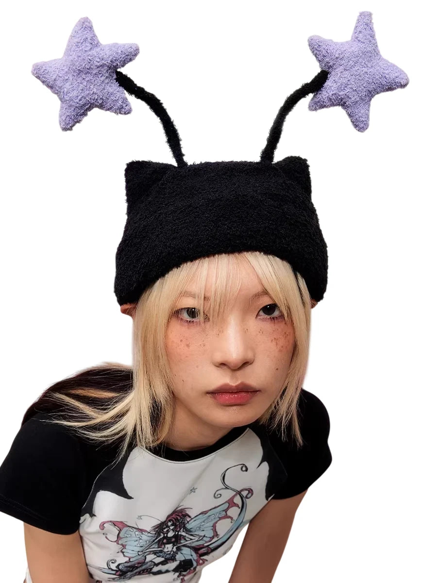 CFIERCE Cat Ear Knit Hat with Star Antennas