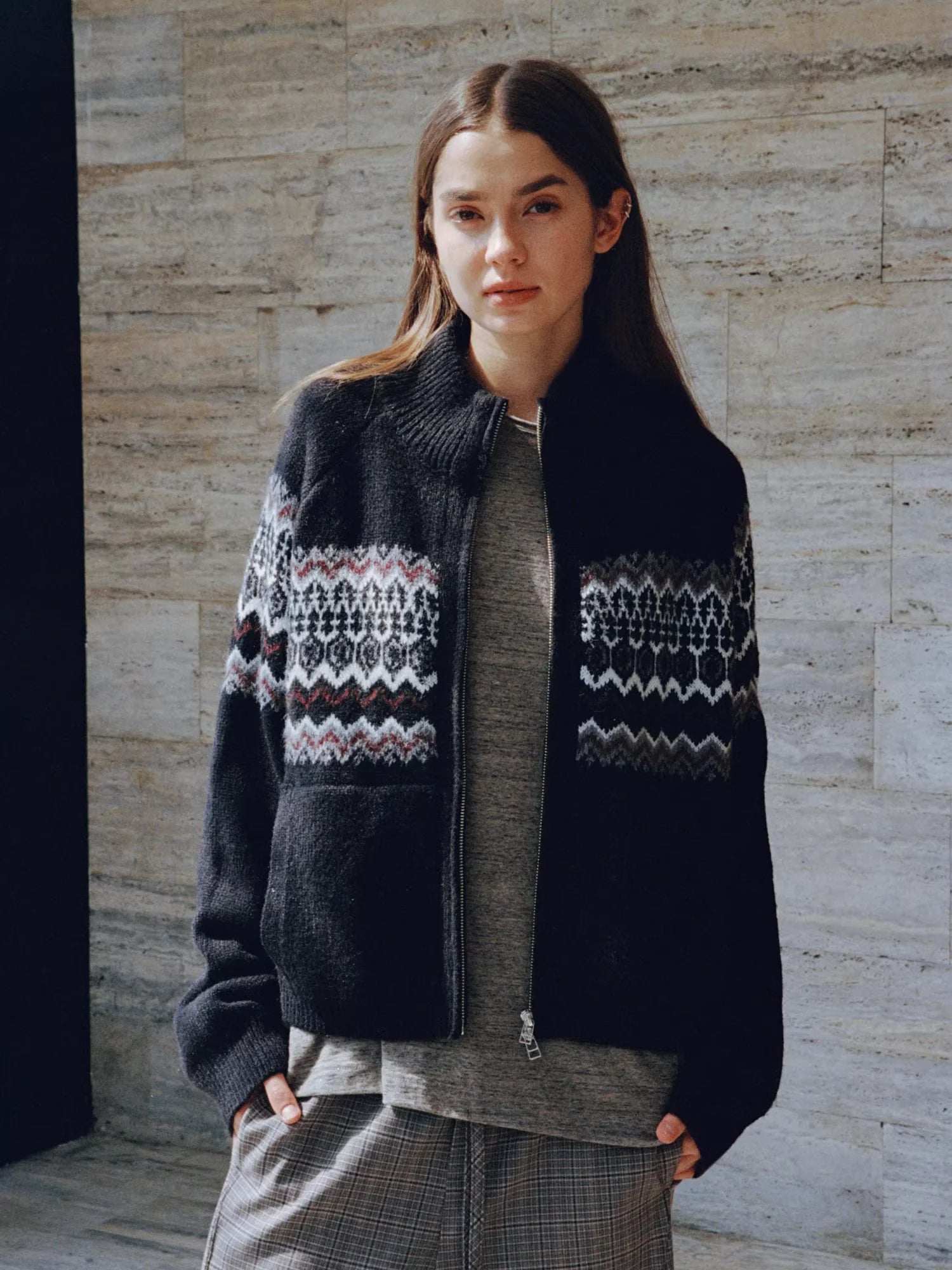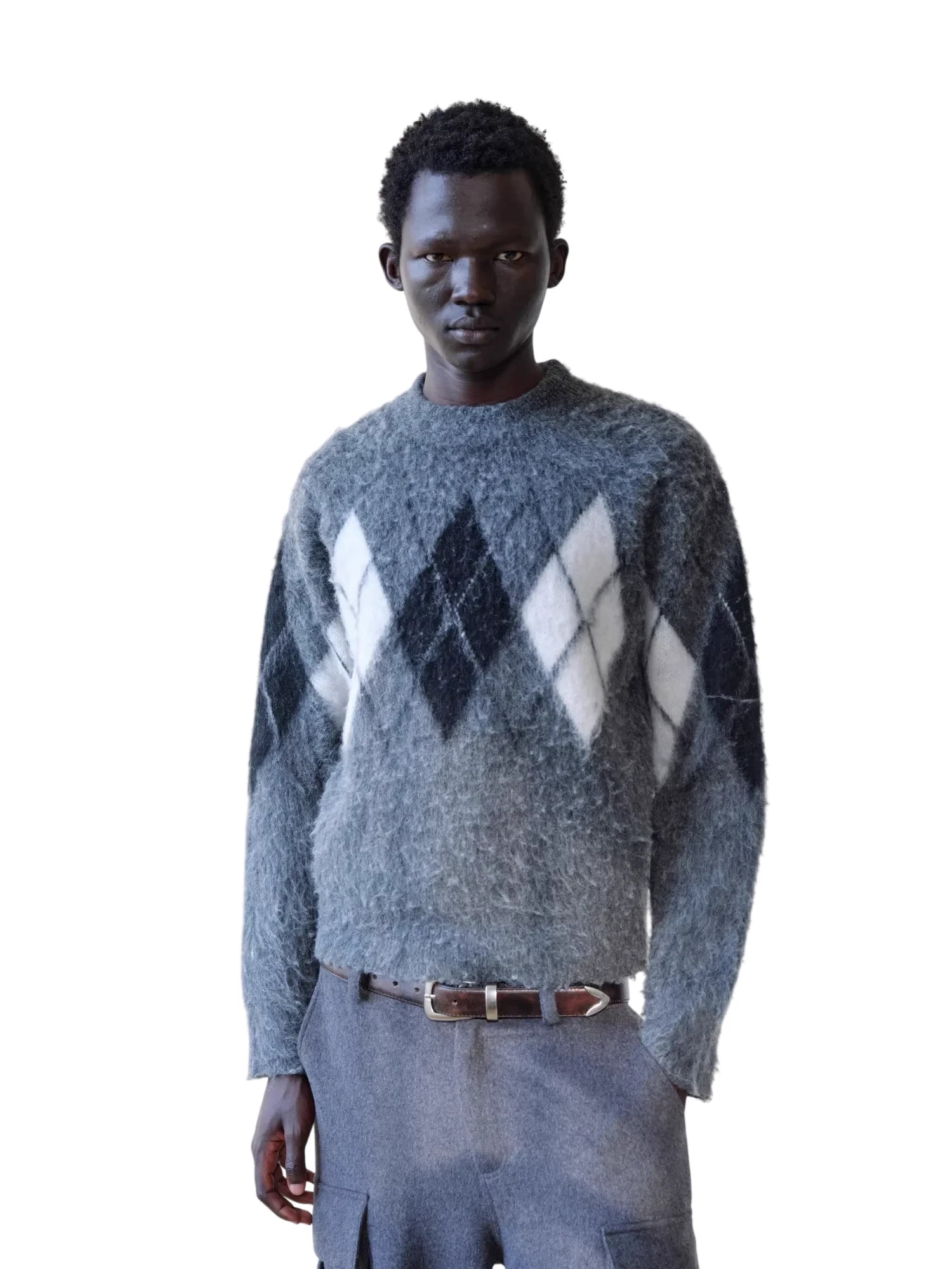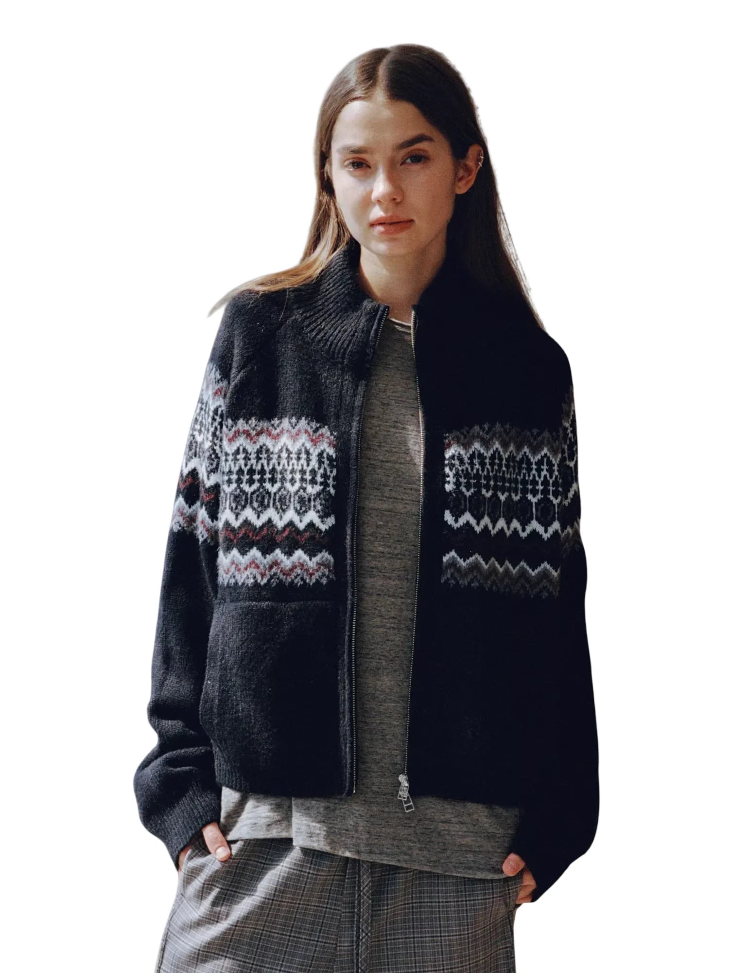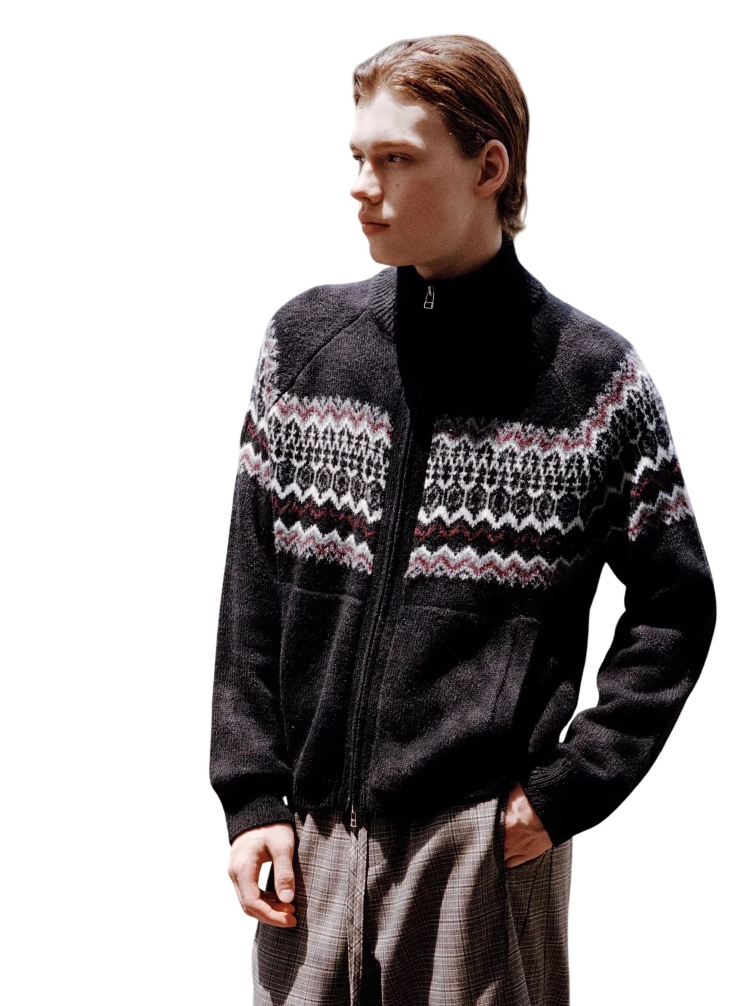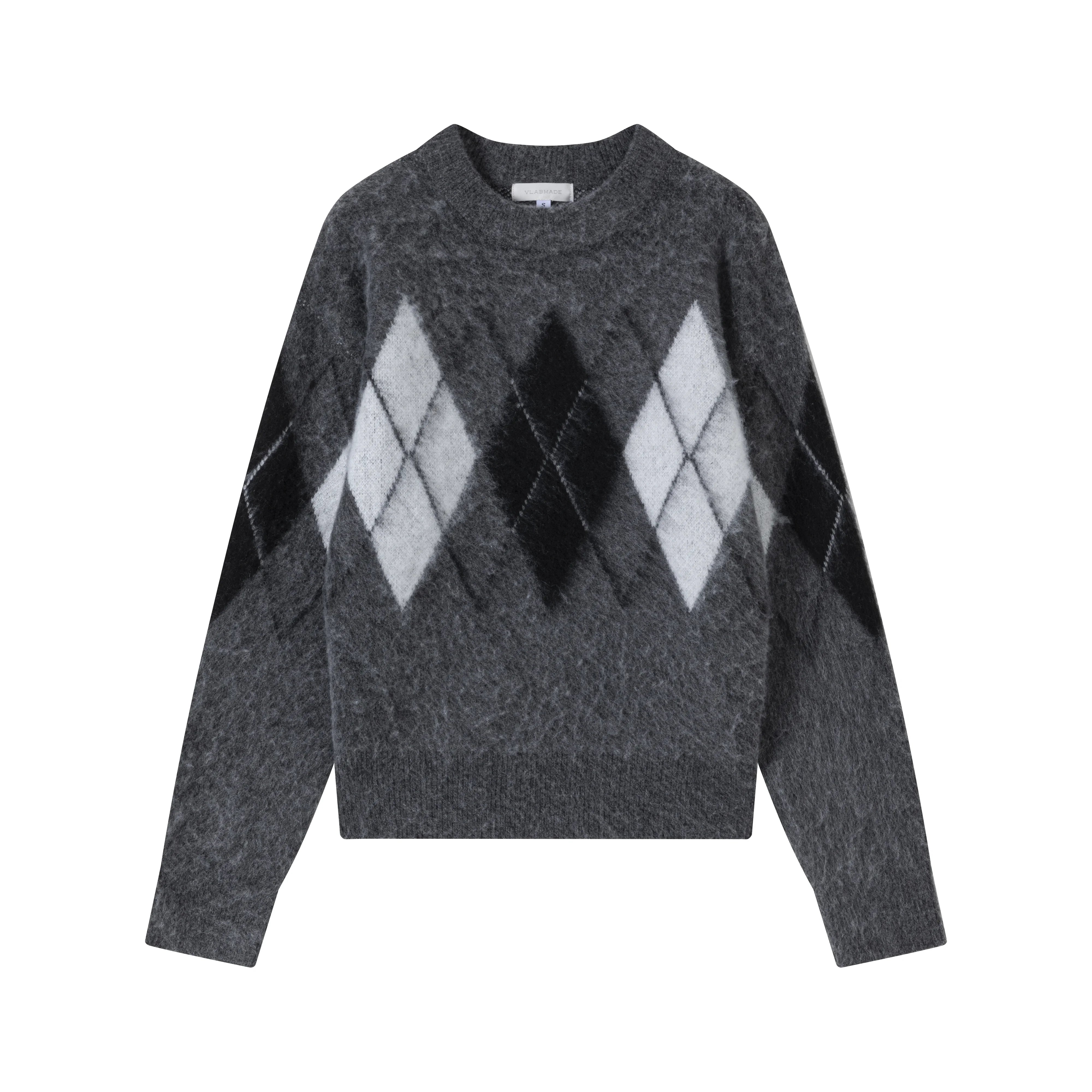 Simple Project Hooded Jacquard Sweater with Diamond Pattern