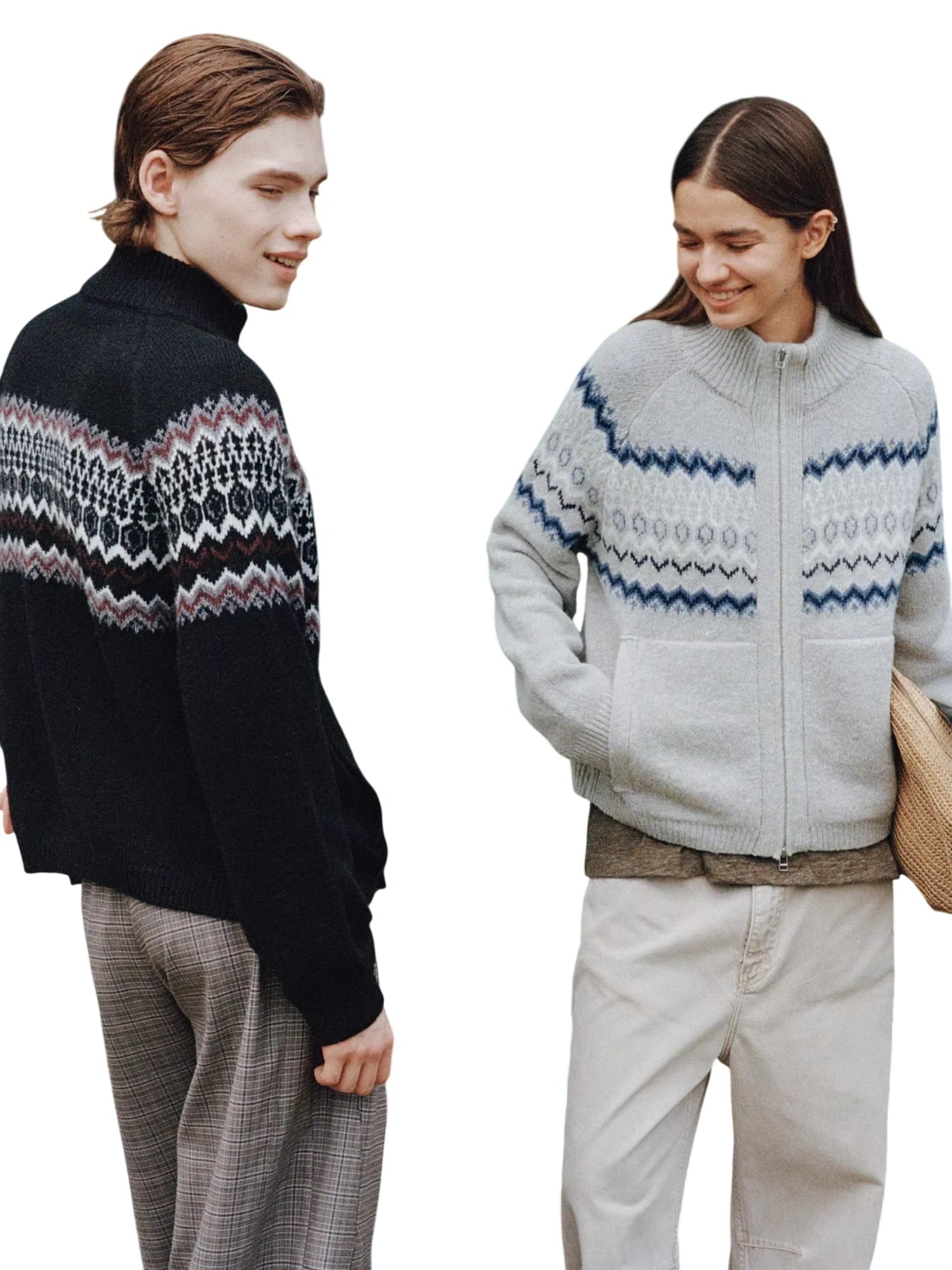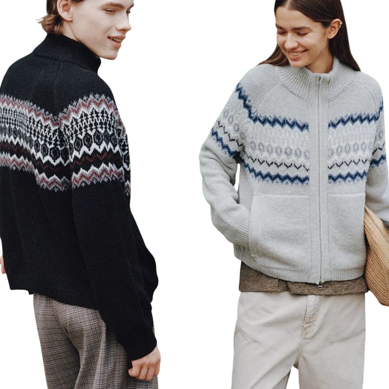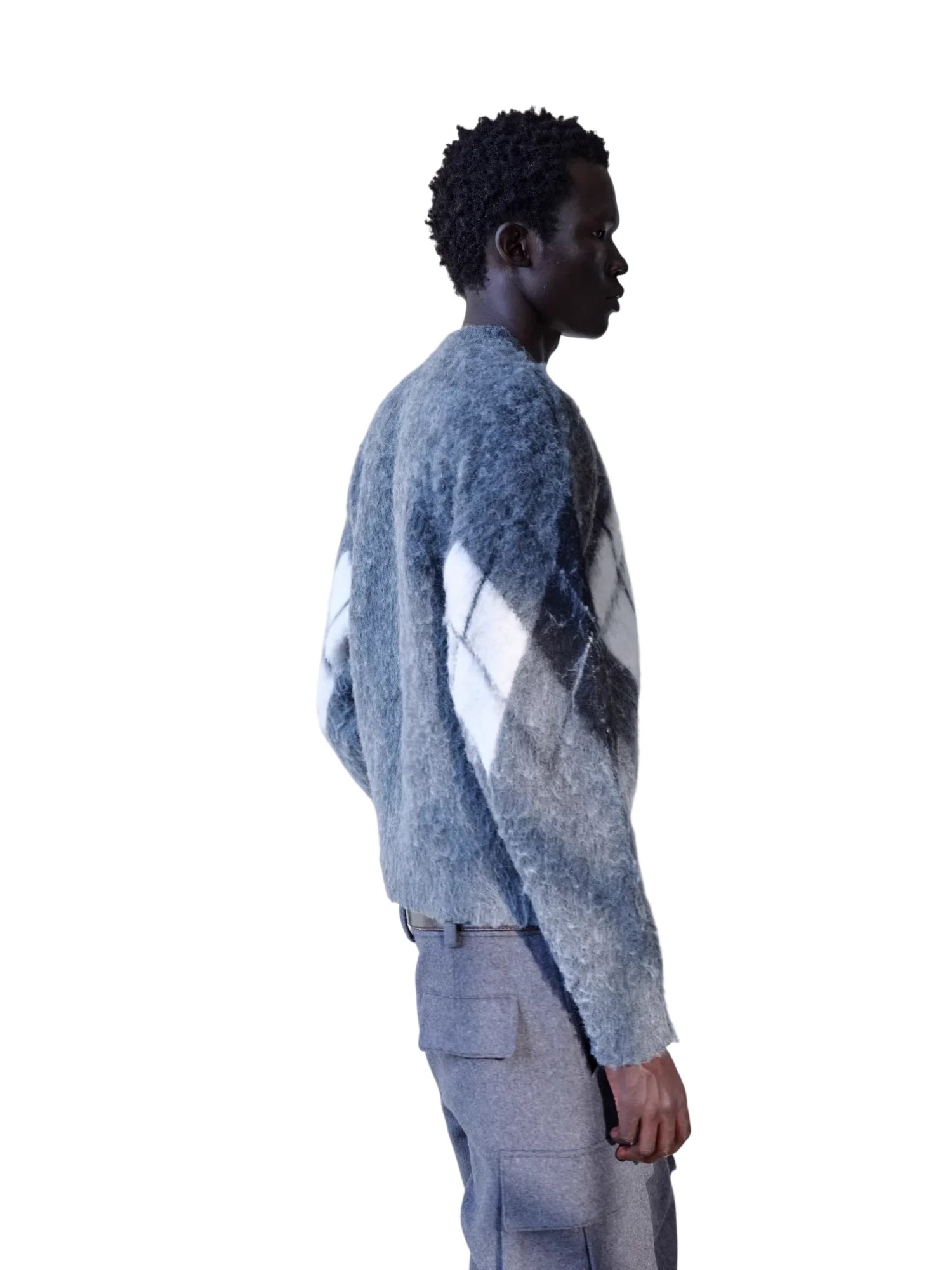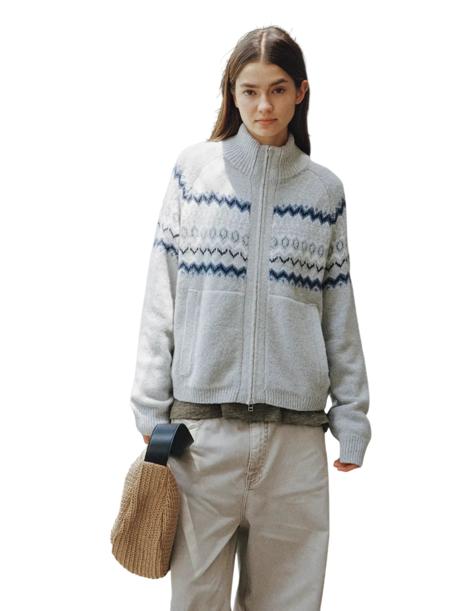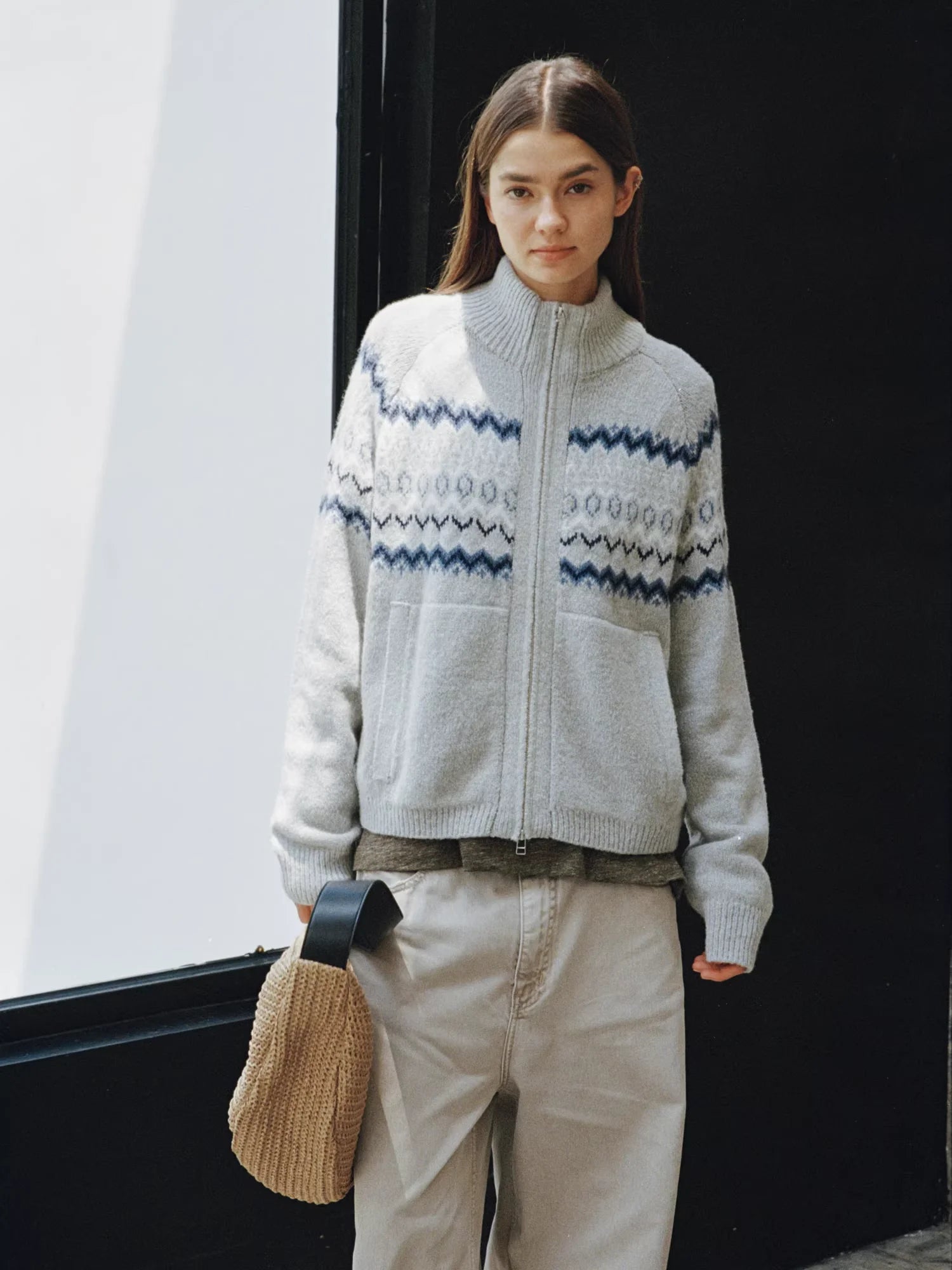 Simple Project Hooded Jacquard Sweater with Diamond Pattern