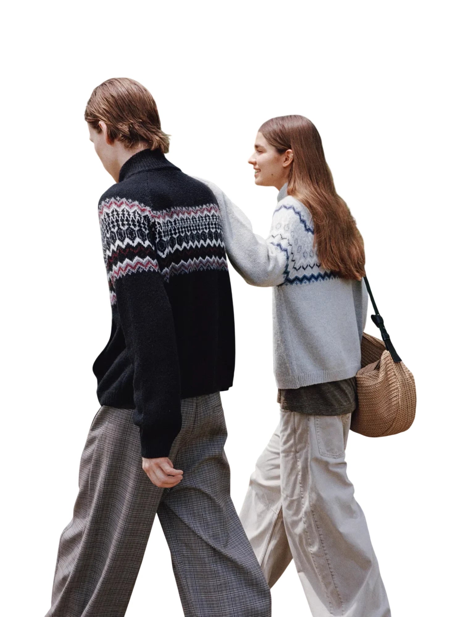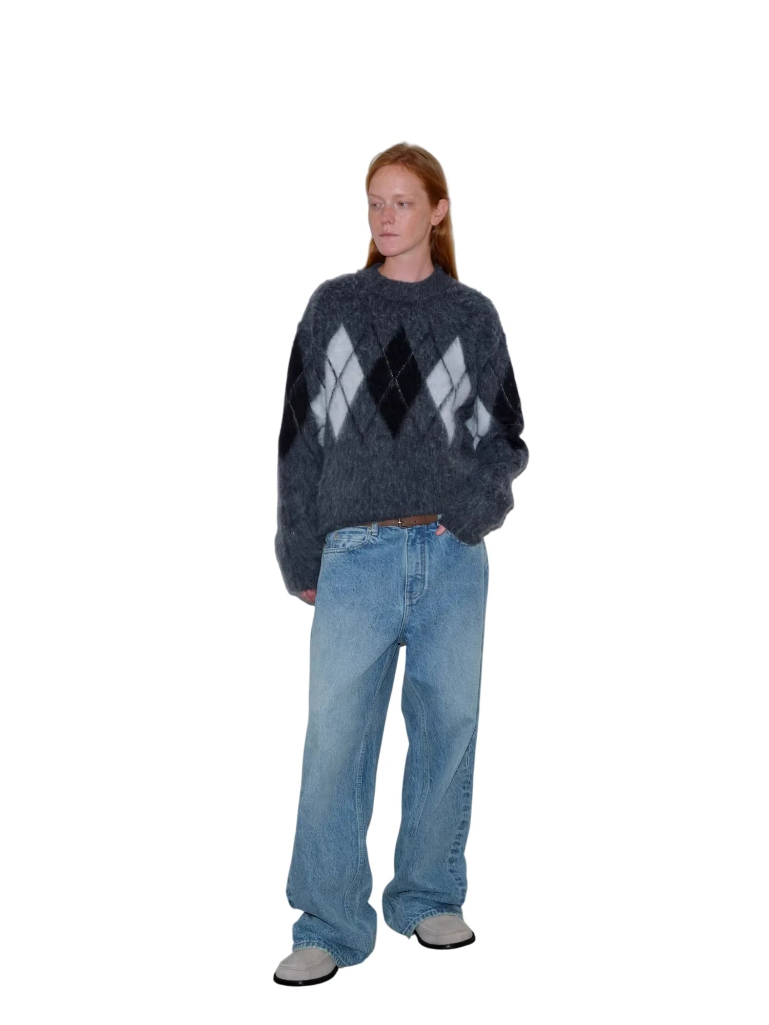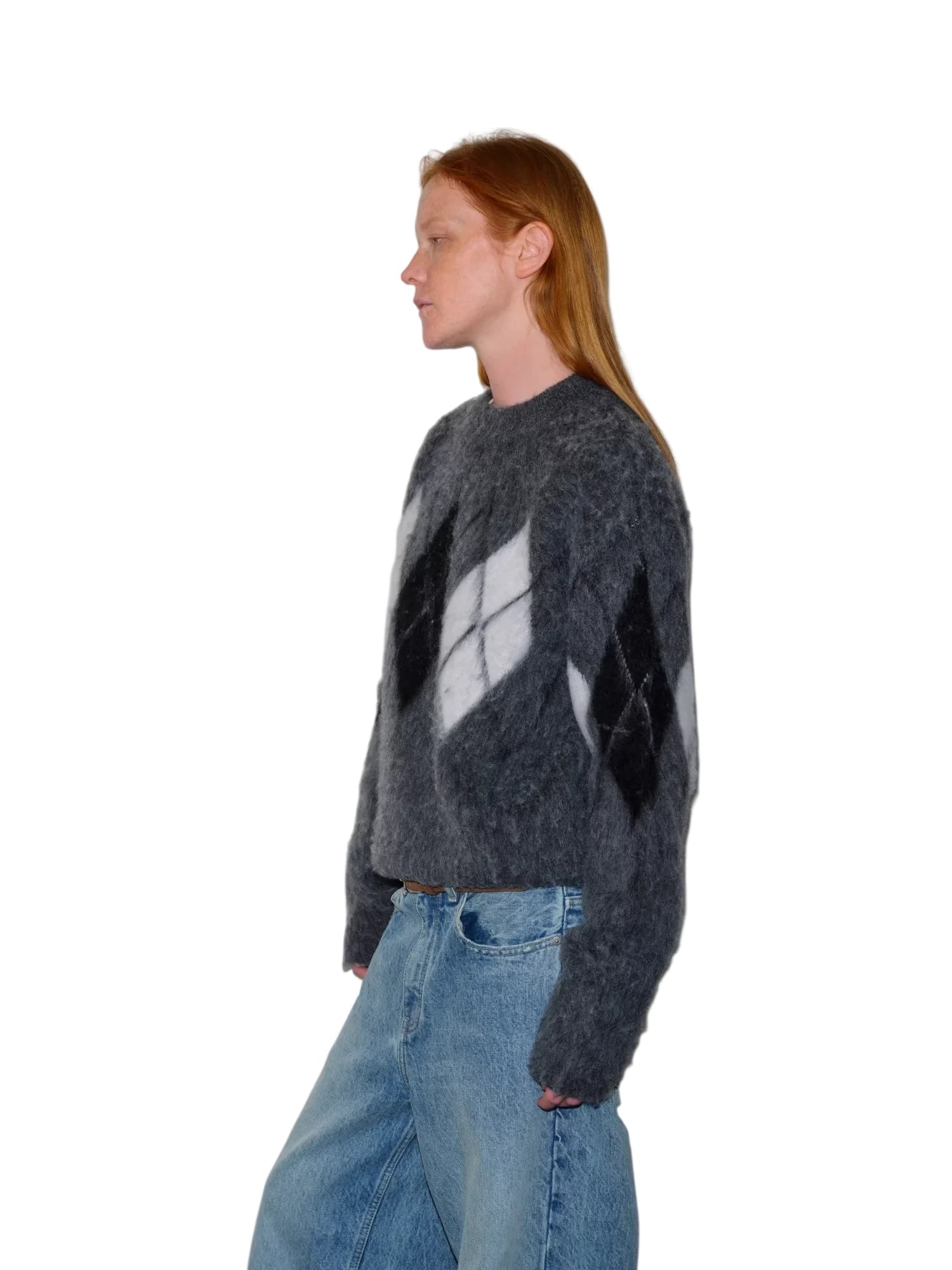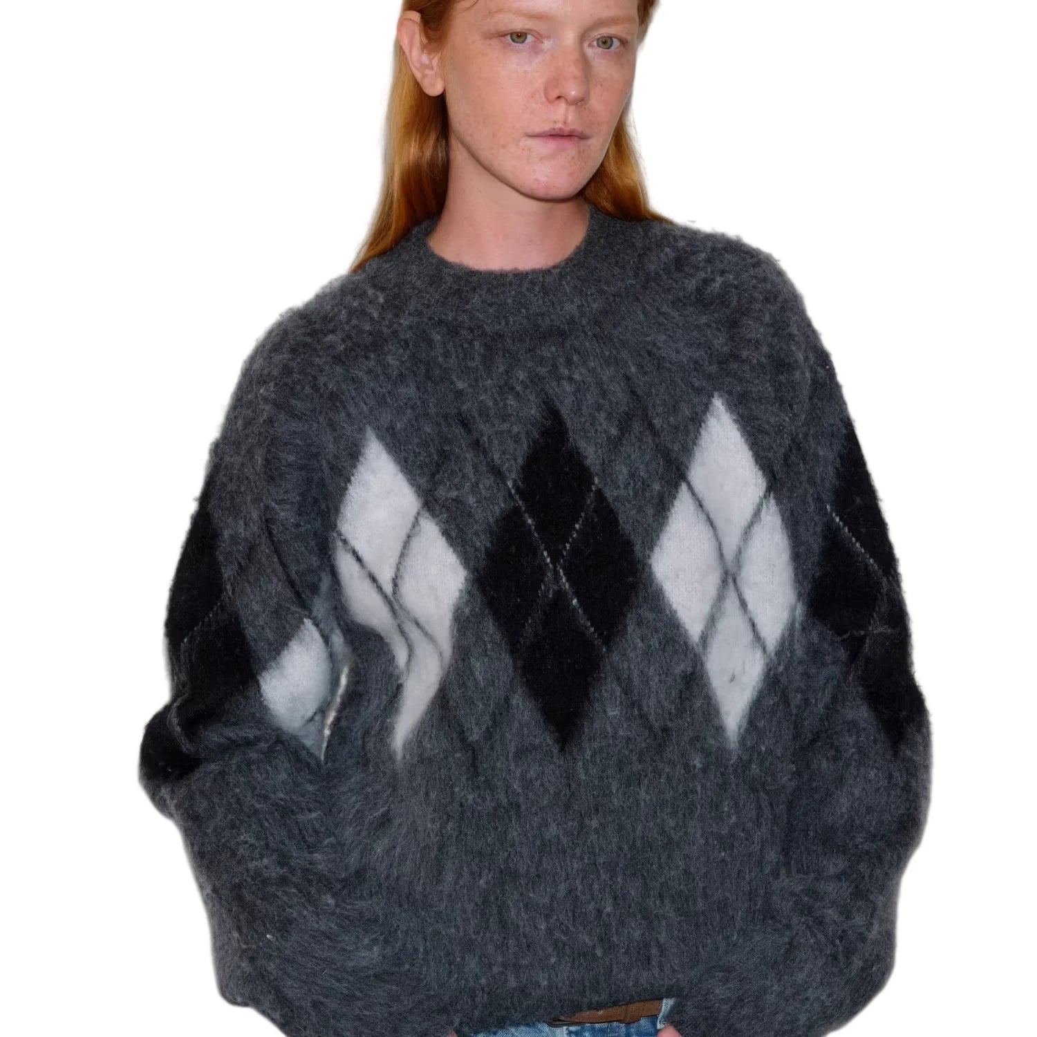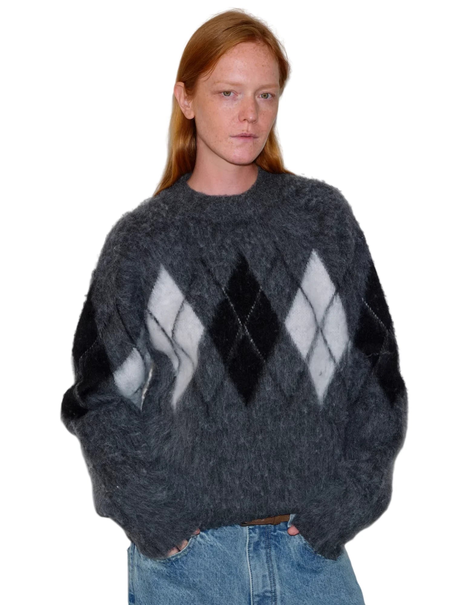 Simple Project Hooded Jacquard Sweater with Diamond Pattern