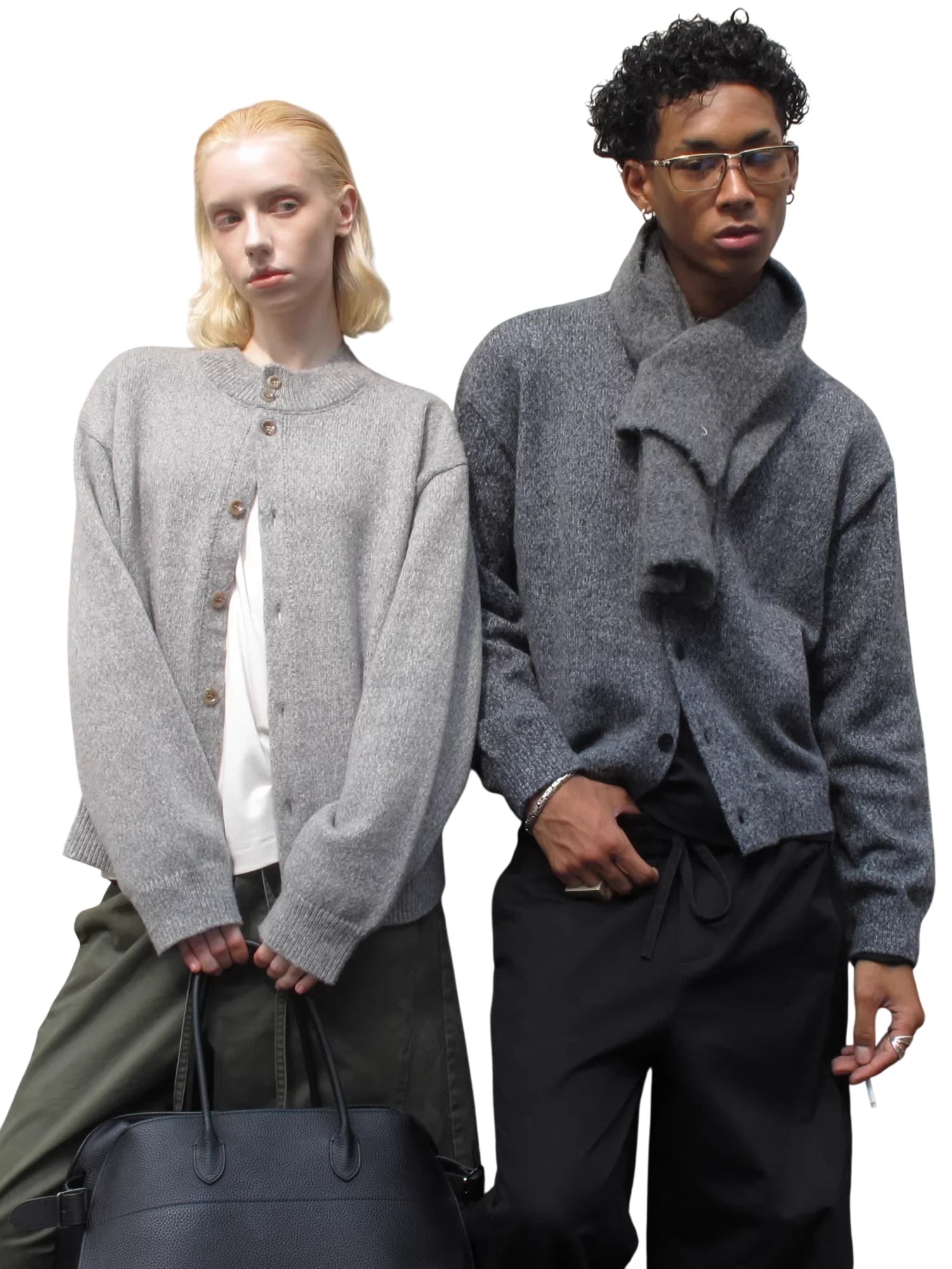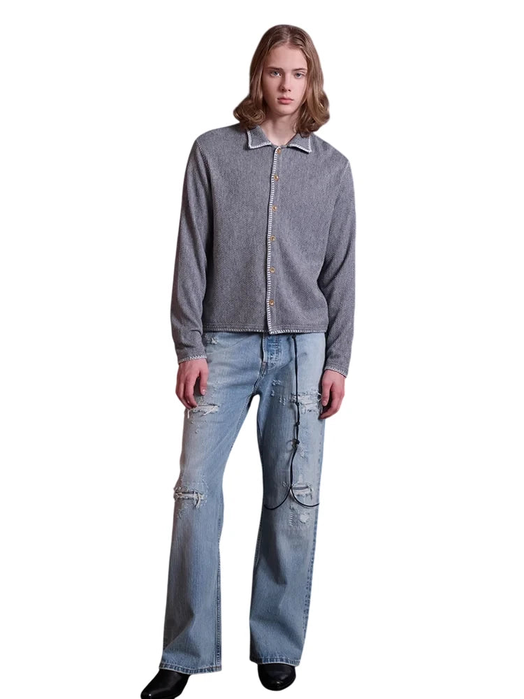 VLABMADE Mixed Color Slub Yarn Loose Knit Cardigan