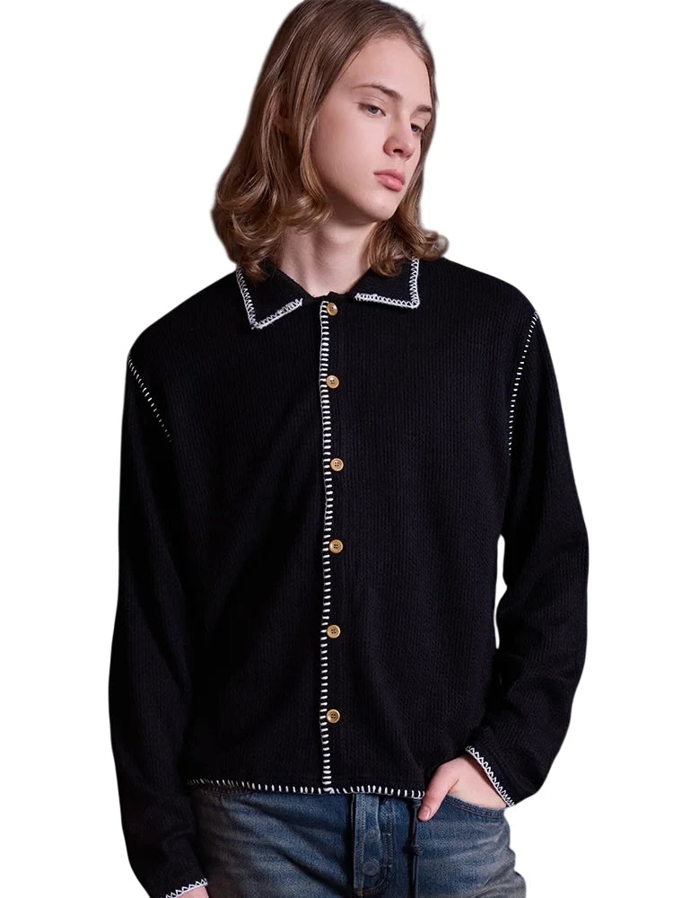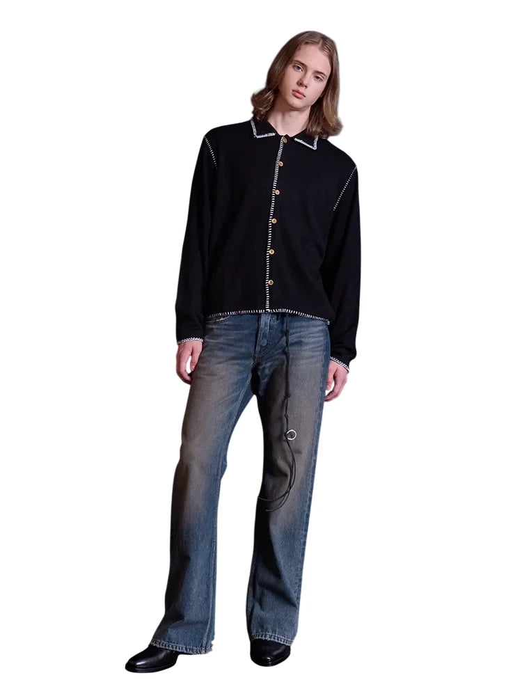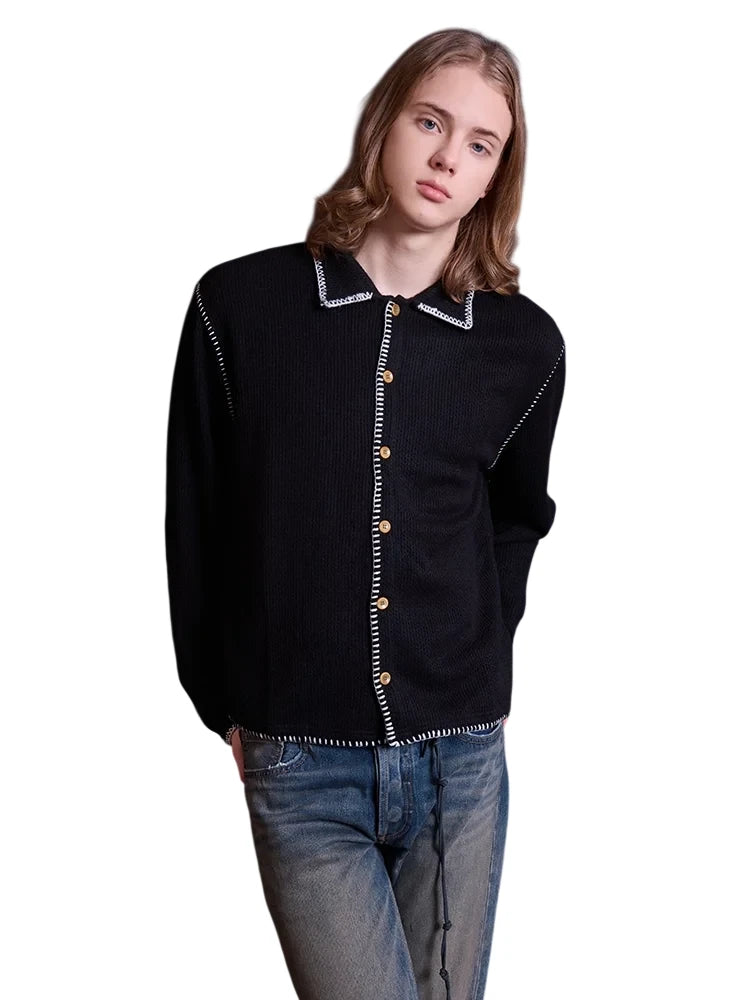 VLABMADE Ribbed Wool Blend Button-Up Polo Collar Cardigan