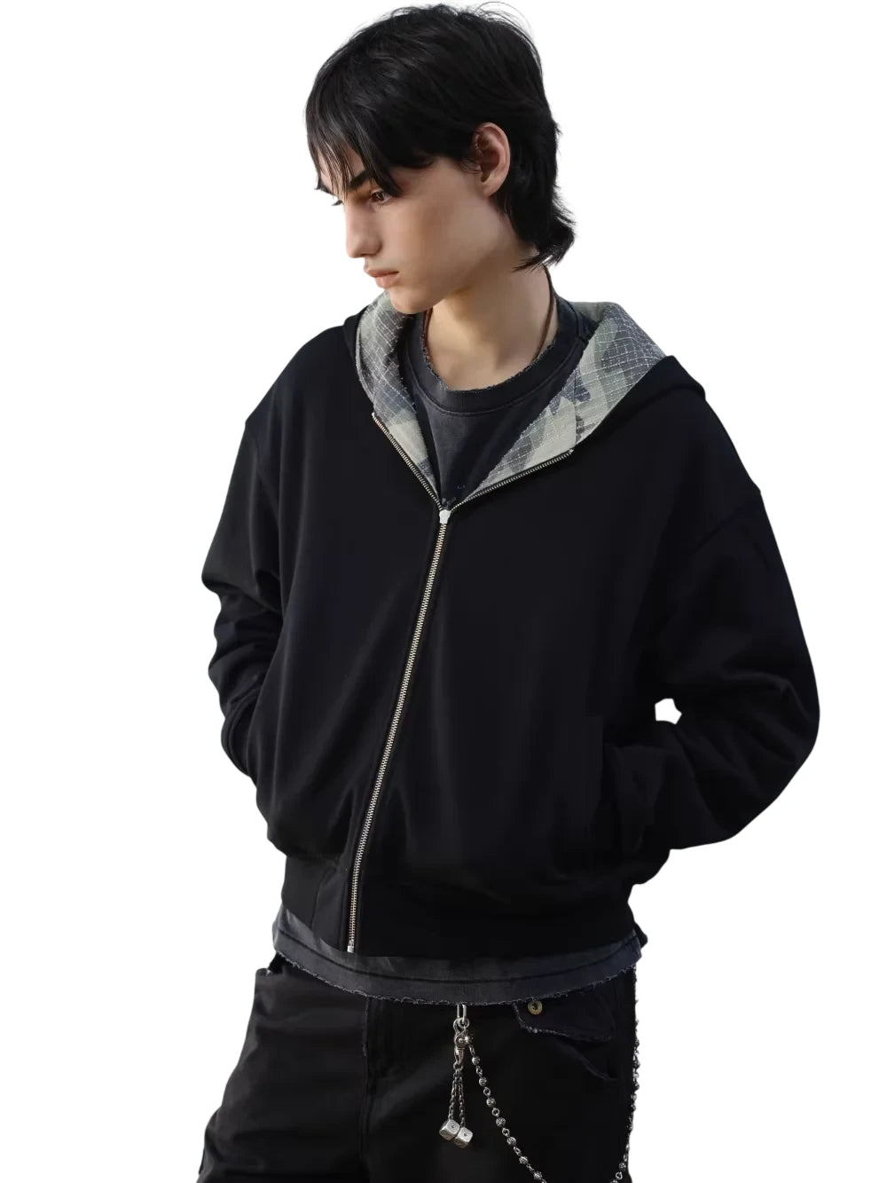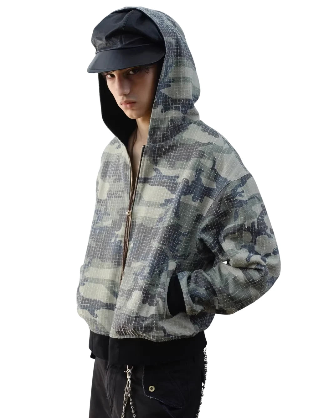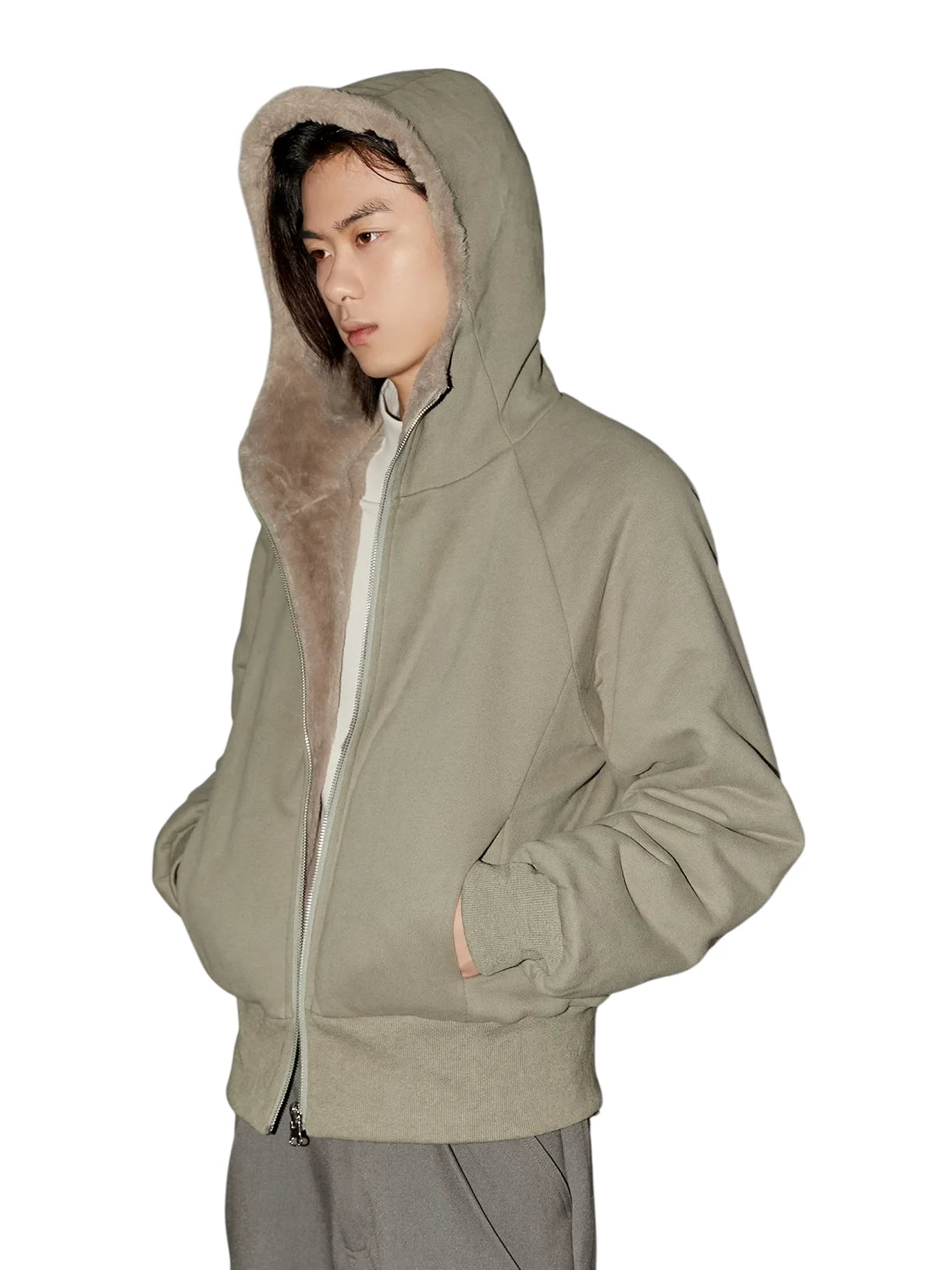 VLABMADE Men's Vintage Mélange Knit Hoodie with Double Zipper