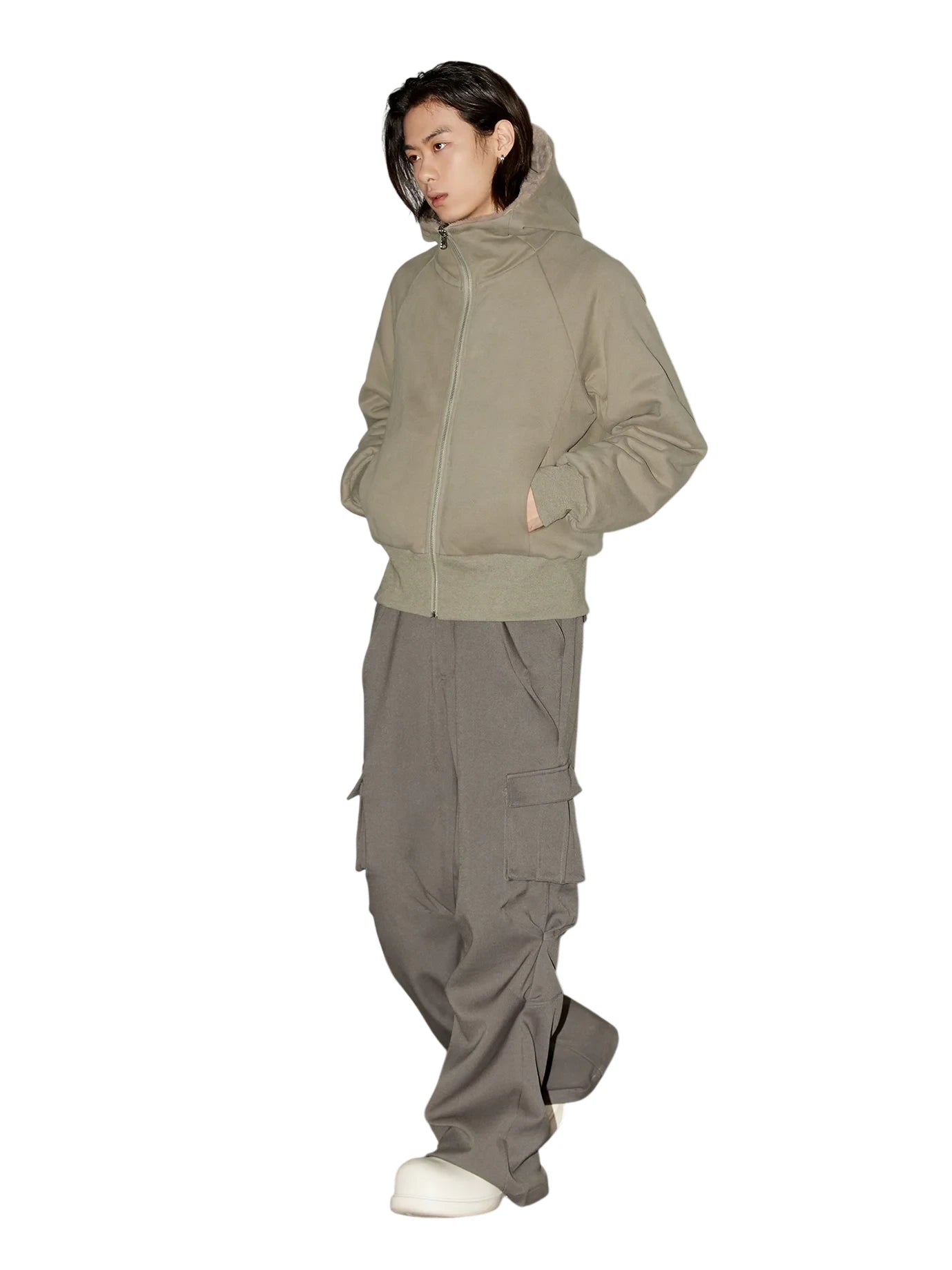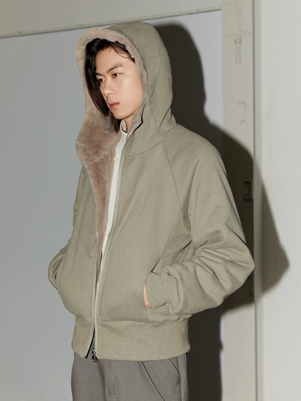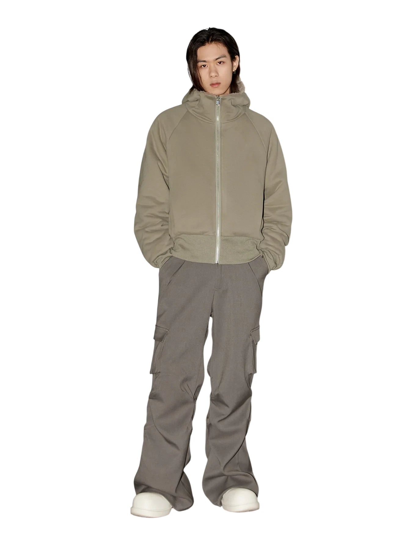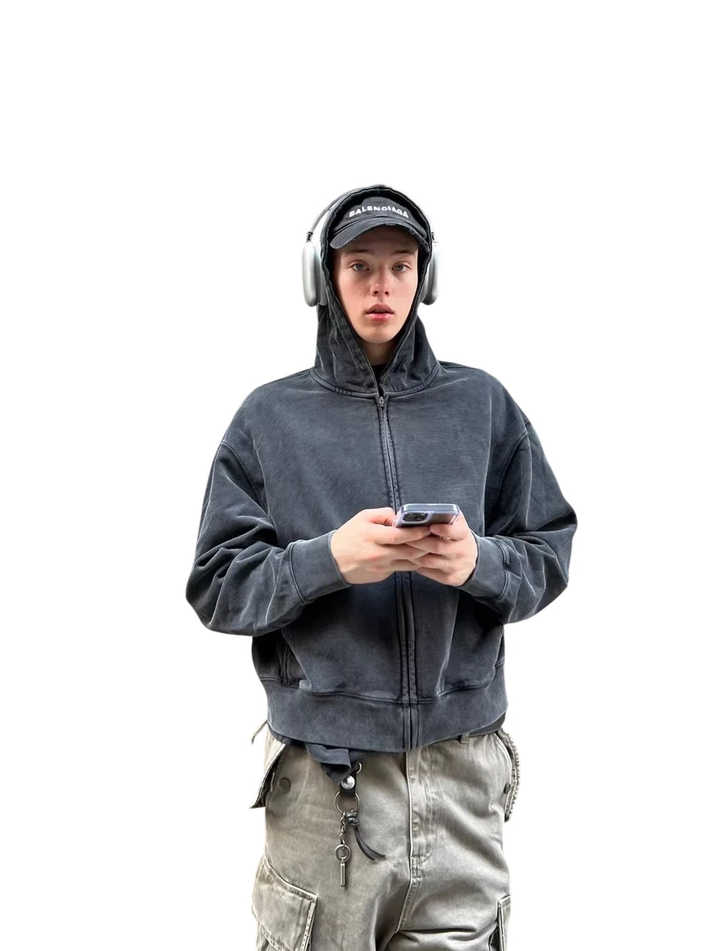 VLABMADE Men's Vintage Mélange Knit Hoodie with Double Zipper