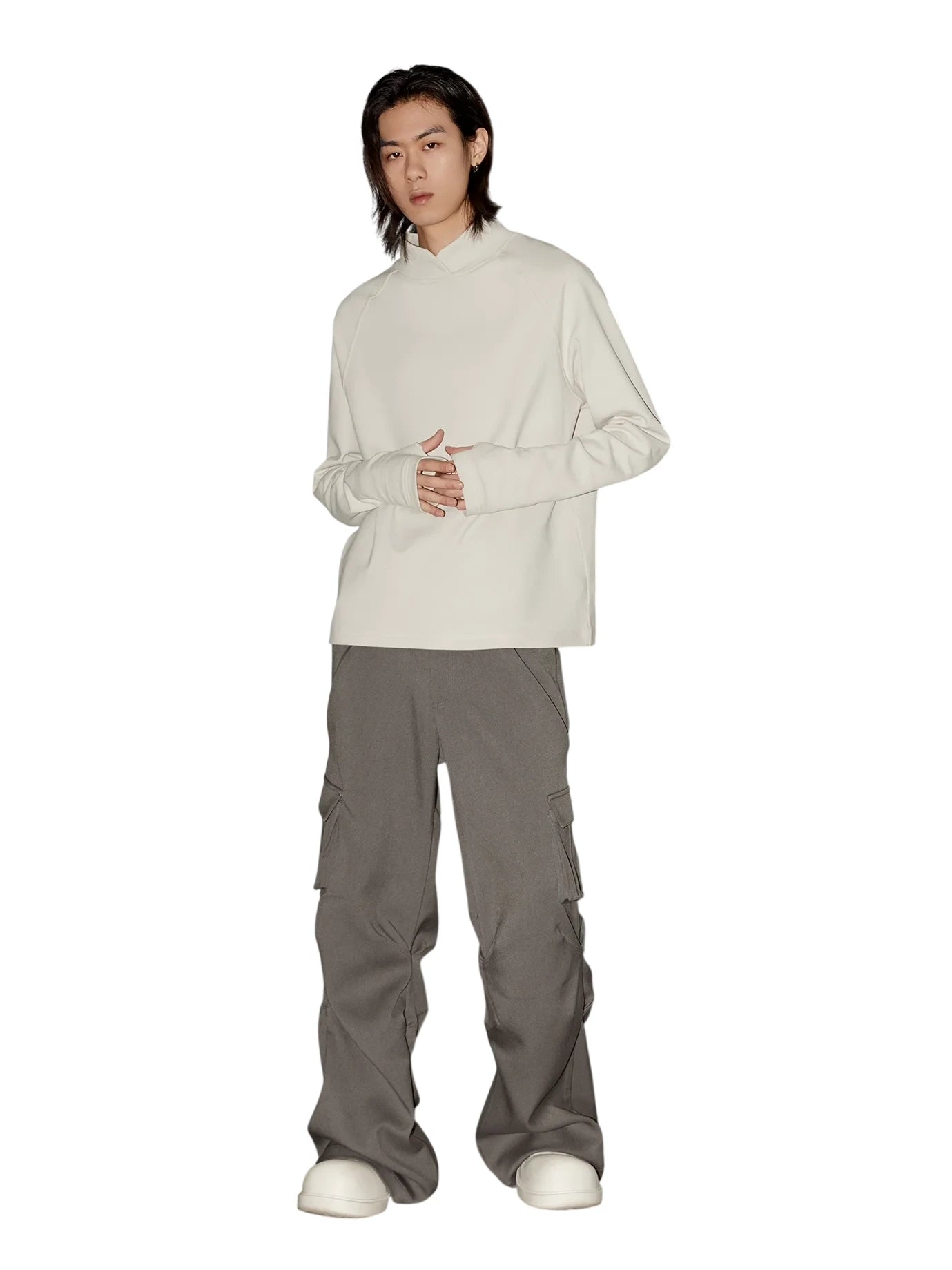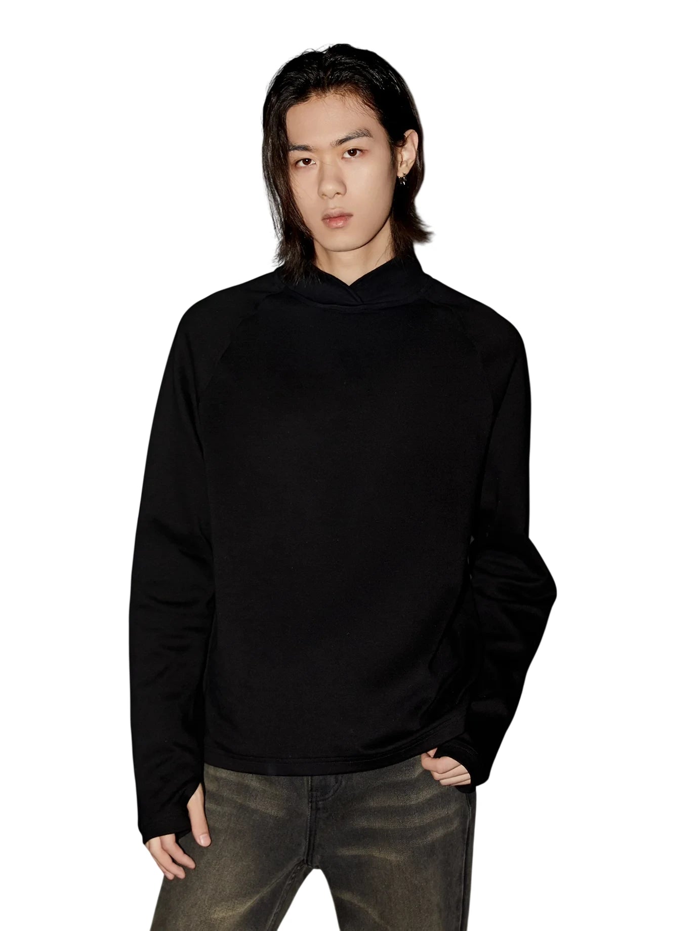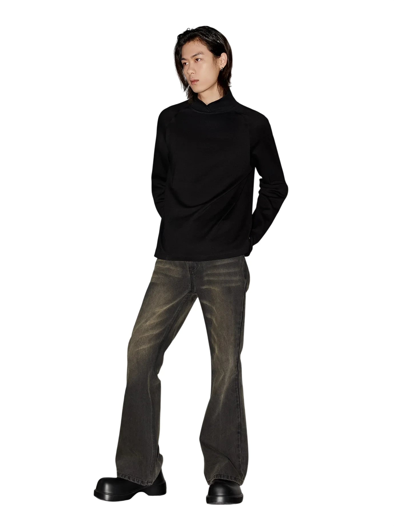 VLABMADE Fine Wool Blend Relaxed Fit Crew Neck Sweater with Pocket