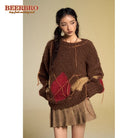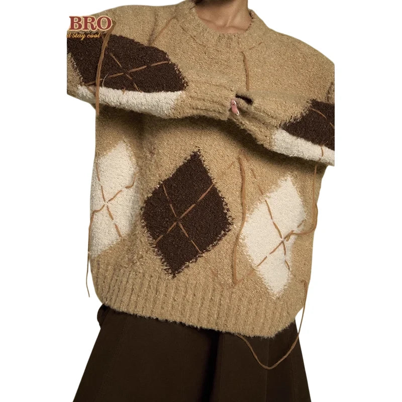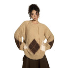 BeerBro Loose Argyle Knit Sweater Cardigan for Women - Autumn Winter 2023
