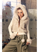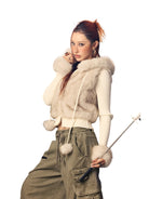 Stay cozy and stylish this season with this women's fuzzy hooded knit cardigan jacket. Designed for fall and winter, this soft and warm piece features a patchwork design and a plush, oversized hood with playful pom-pom drawstrings. Layered effortlessly over casual or chic outfits, it's perfect for keeping comfortable while making a trendy statement. Ideal for cool-weather wardrobes seeking both comfort and urban flair.