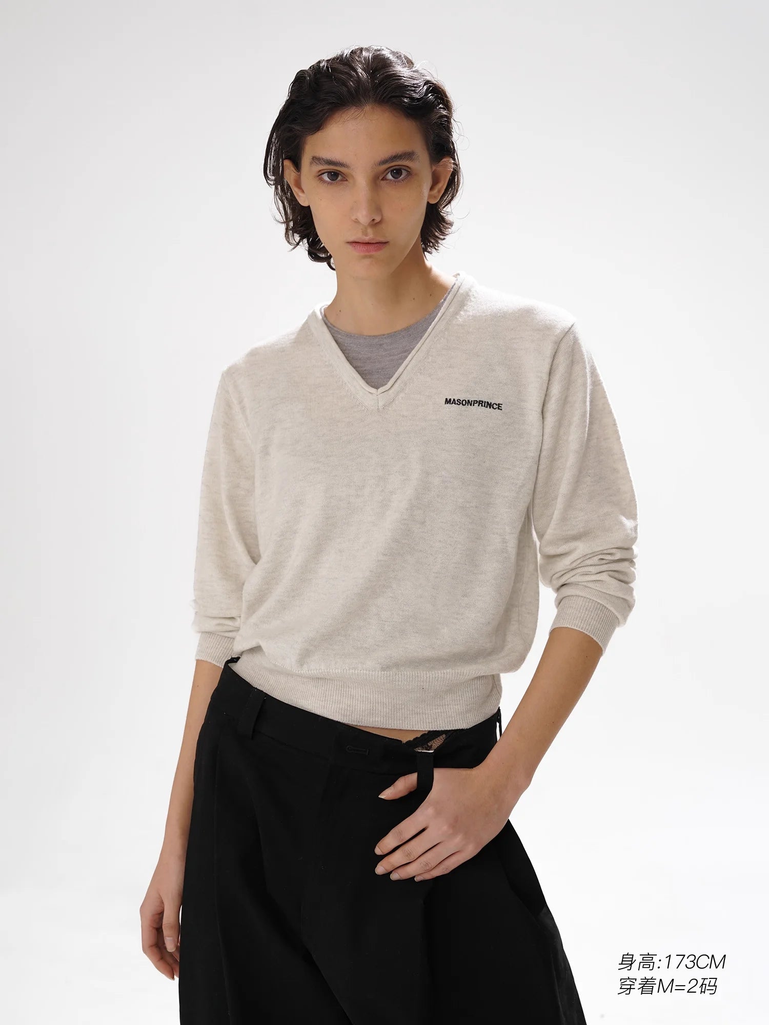 MASONPRINCE Color-Block Faux Two-Piece Embroidered Wool Sweater