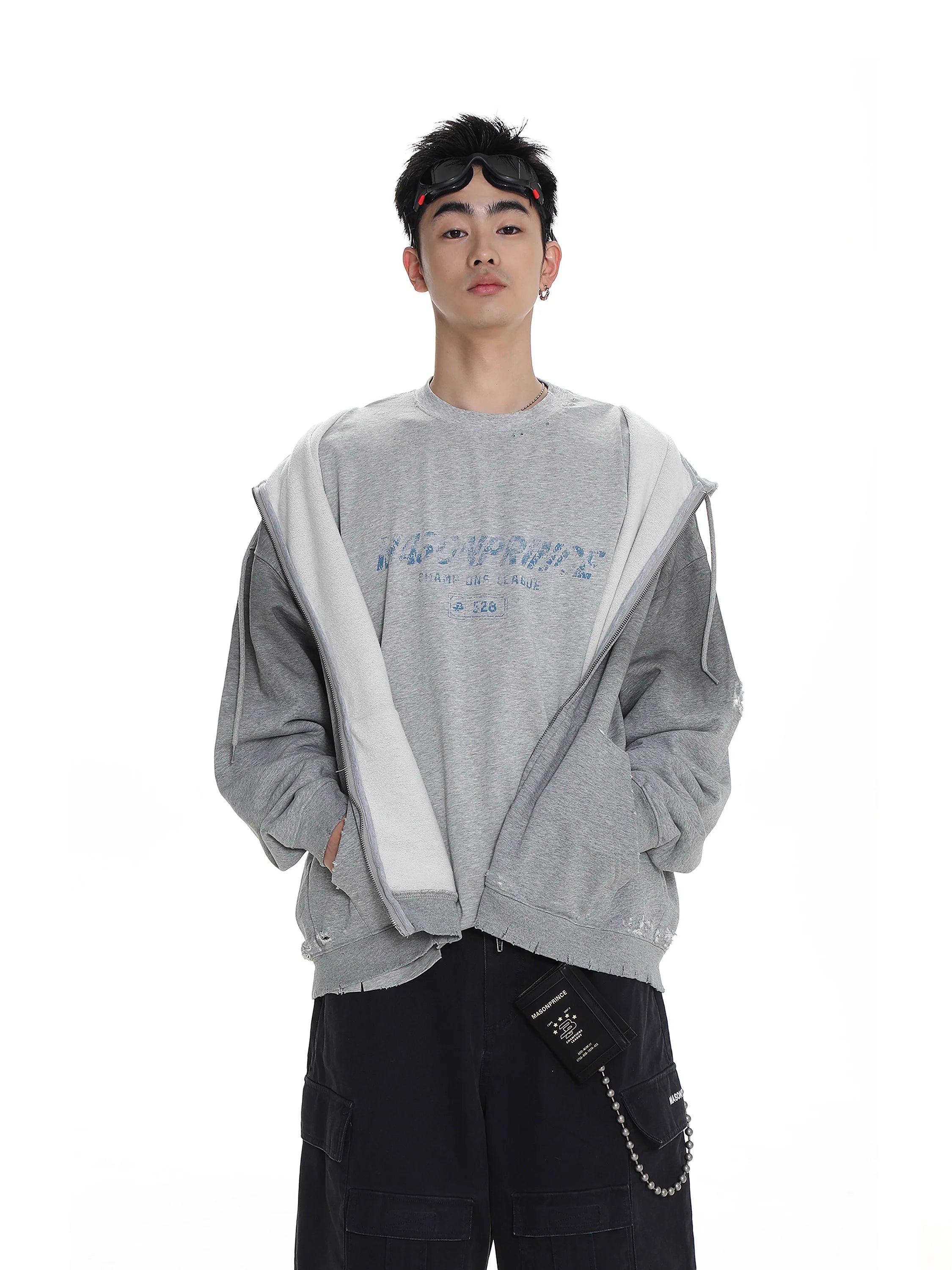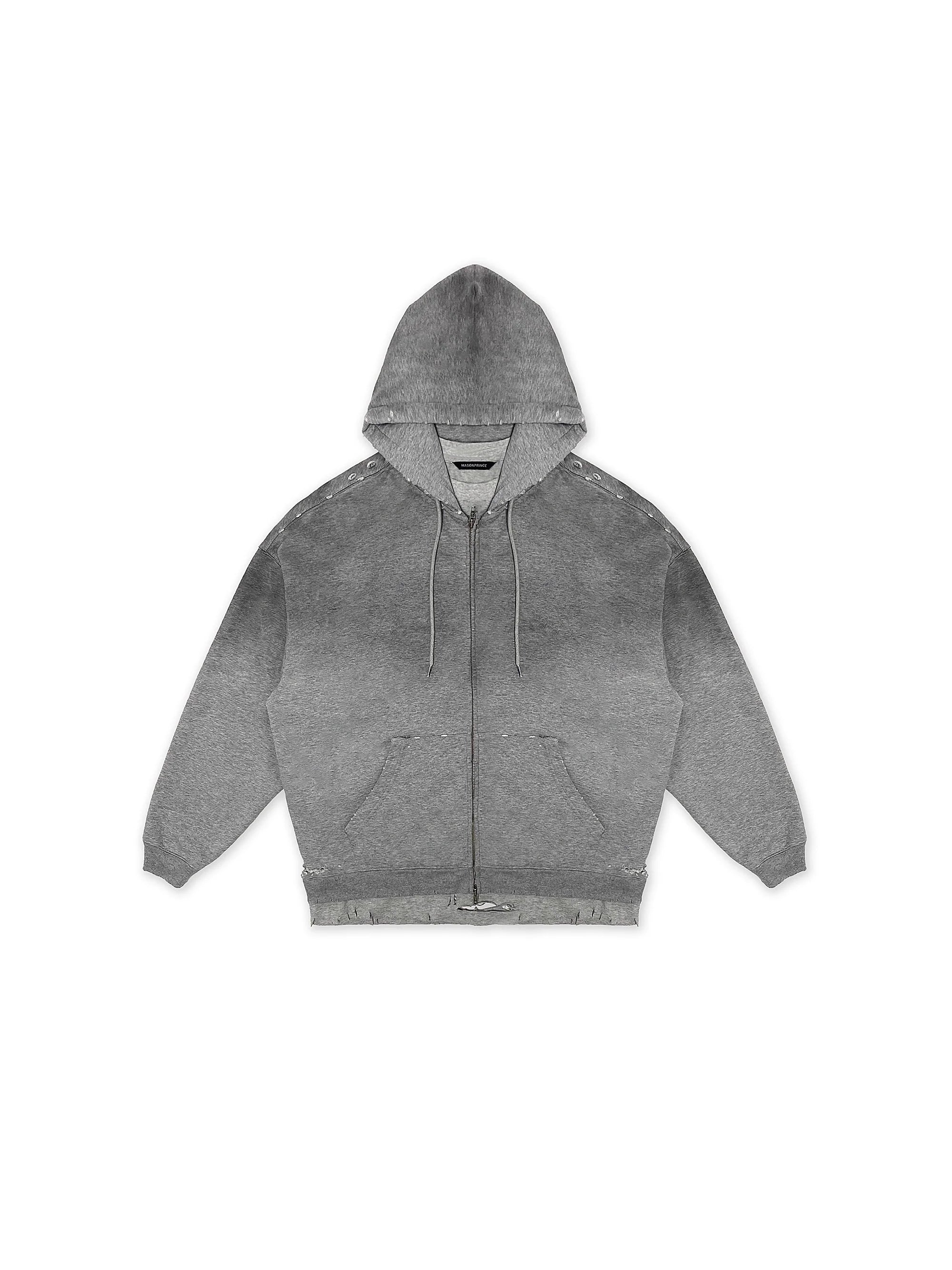 MASONPRINCE Distressed Zip-Up Fleece Hoodie Jacket