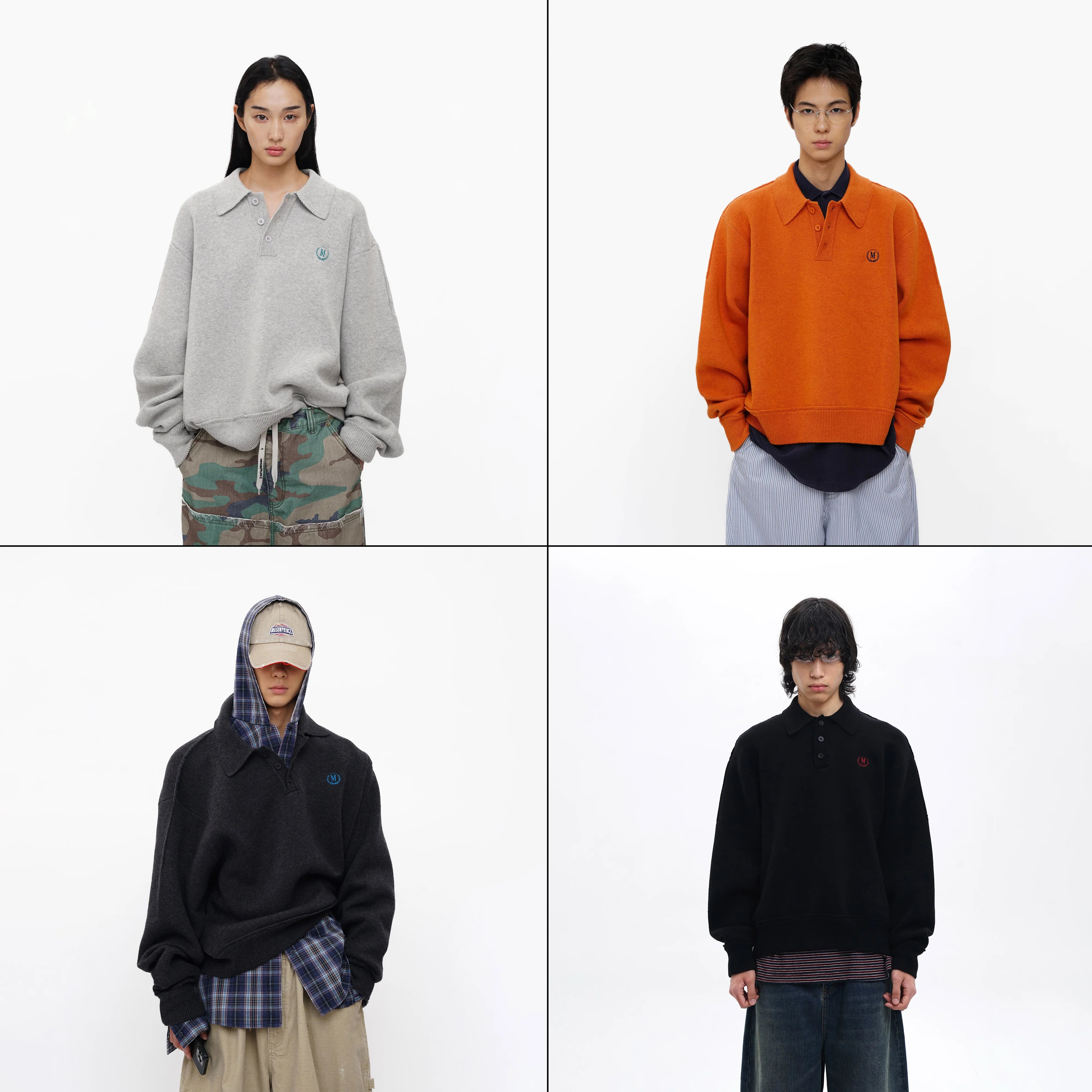 Available in light grey, orange, black, and charcoal, each sweater is finished with a contrasting embroidered circular logo on the left chest for subtle branding. Designed for both men and women, this versatile piece pairs effortlessly with everything from denim to layered casualwear.