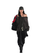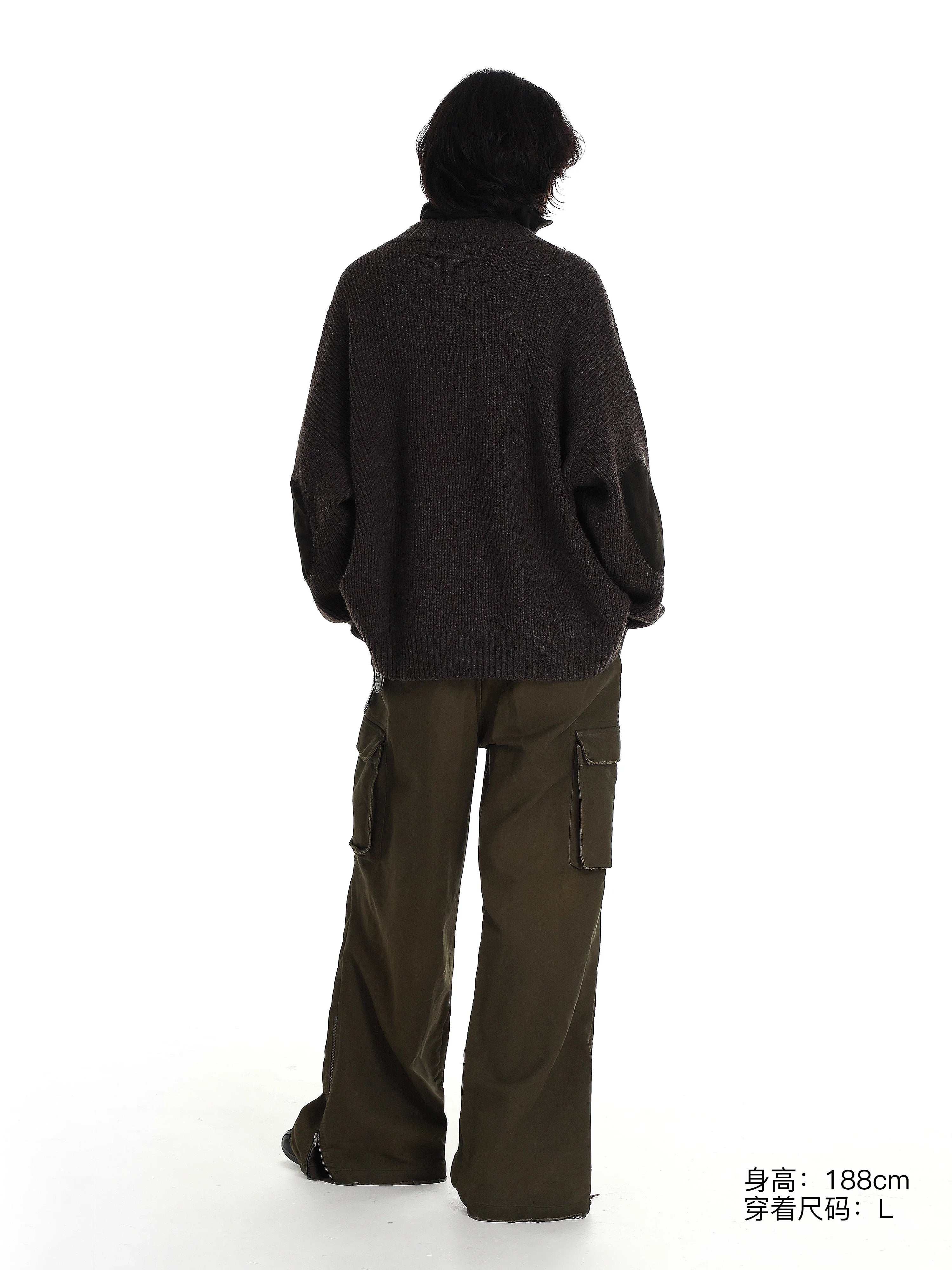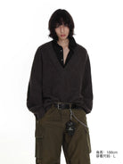 This women's elastic knit sweater features a classic herringbone pattern and a stylish V-neck design. The dark brown color and off-the-shoulder cut offer a relaxed, vintage appeal. Perfect for layering, it pairs effortlessly with skirts or pants for a grunge-inspired streetwear look. The soft, stretchy fabric ensures all-day comfort while maintaining a fashionable silhouette.