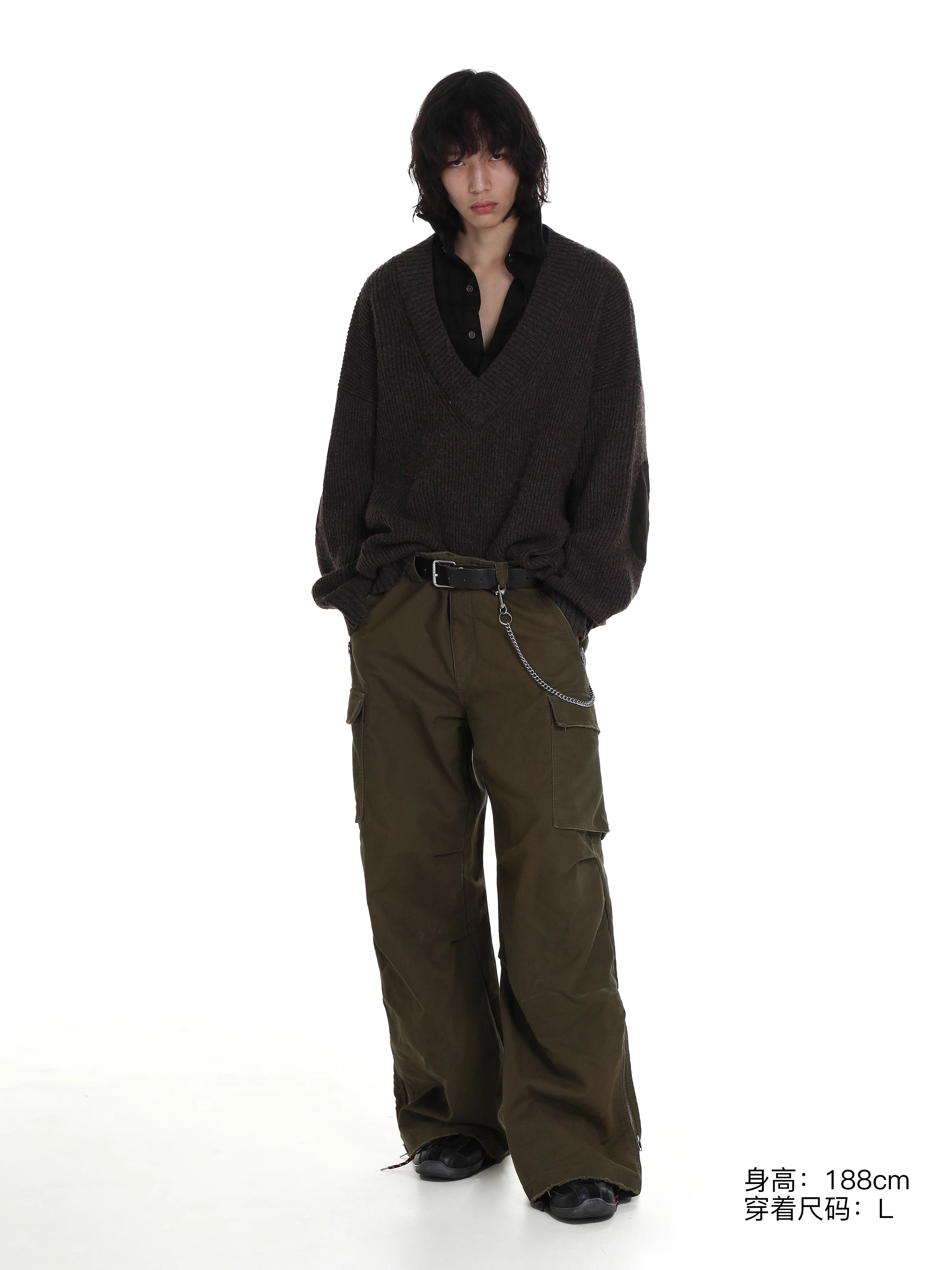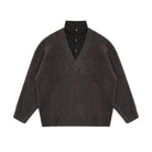 MASONPRINCE Elastic Herringbone Knit V-Neck Sweater
