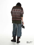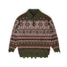 This men's sweater features a timeless Fair Isle pattern in rich, earthy tones of burgundy, olive green, navy, and white. Designed for colder seasons, it is crafted from warm wool and styled with a classic polo collar for a refined yet casual look. The deep V-neck allows for easy layering over shirts, offering comfort and versatility. Perfect for autumn and winter, this pullover combines traditional Nordic-inspired motifs with modern fashion sensibilities.