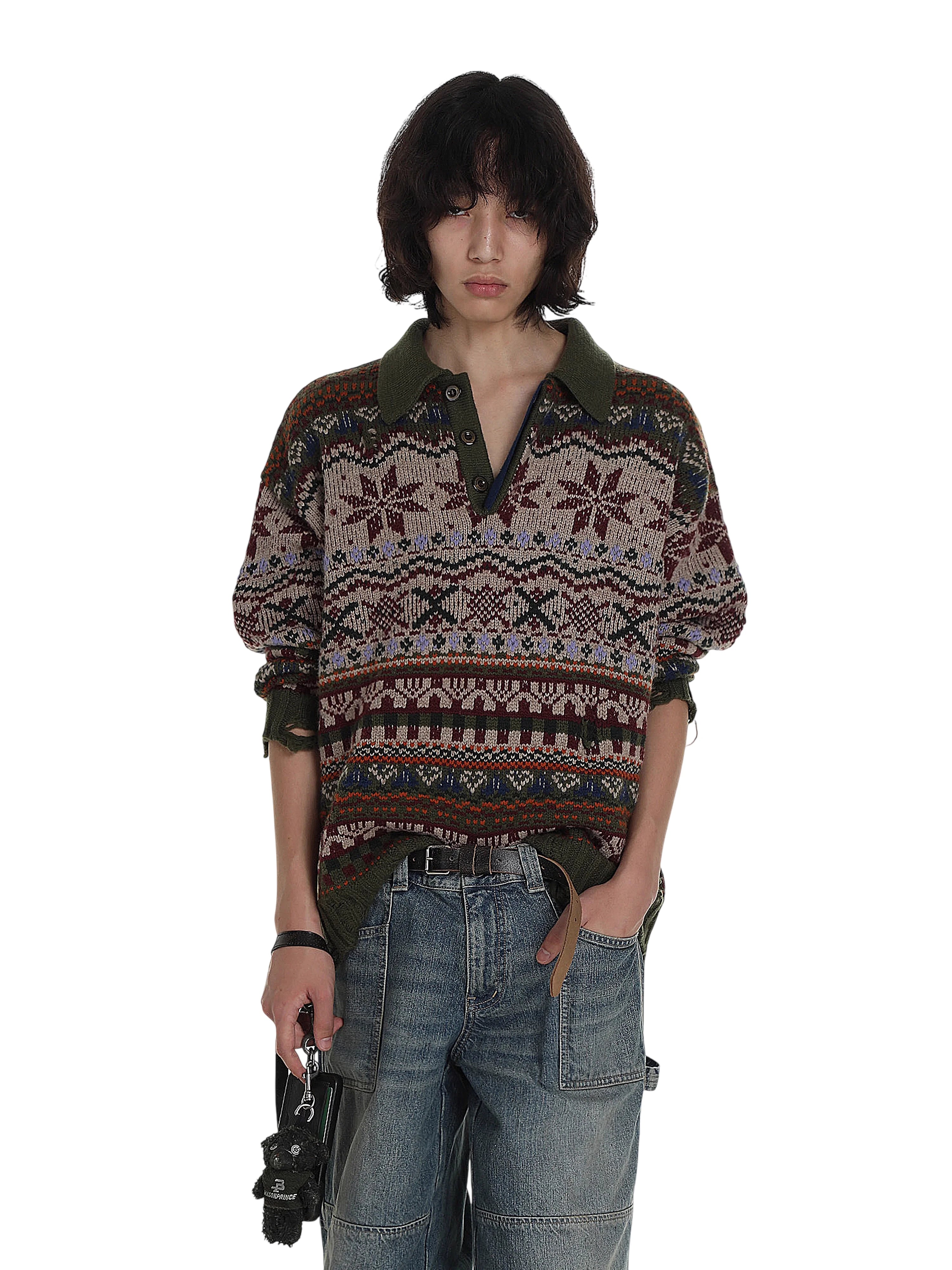 MASONPRINCE Fair Isle Wool Polo Sweater for Autumn and Winter