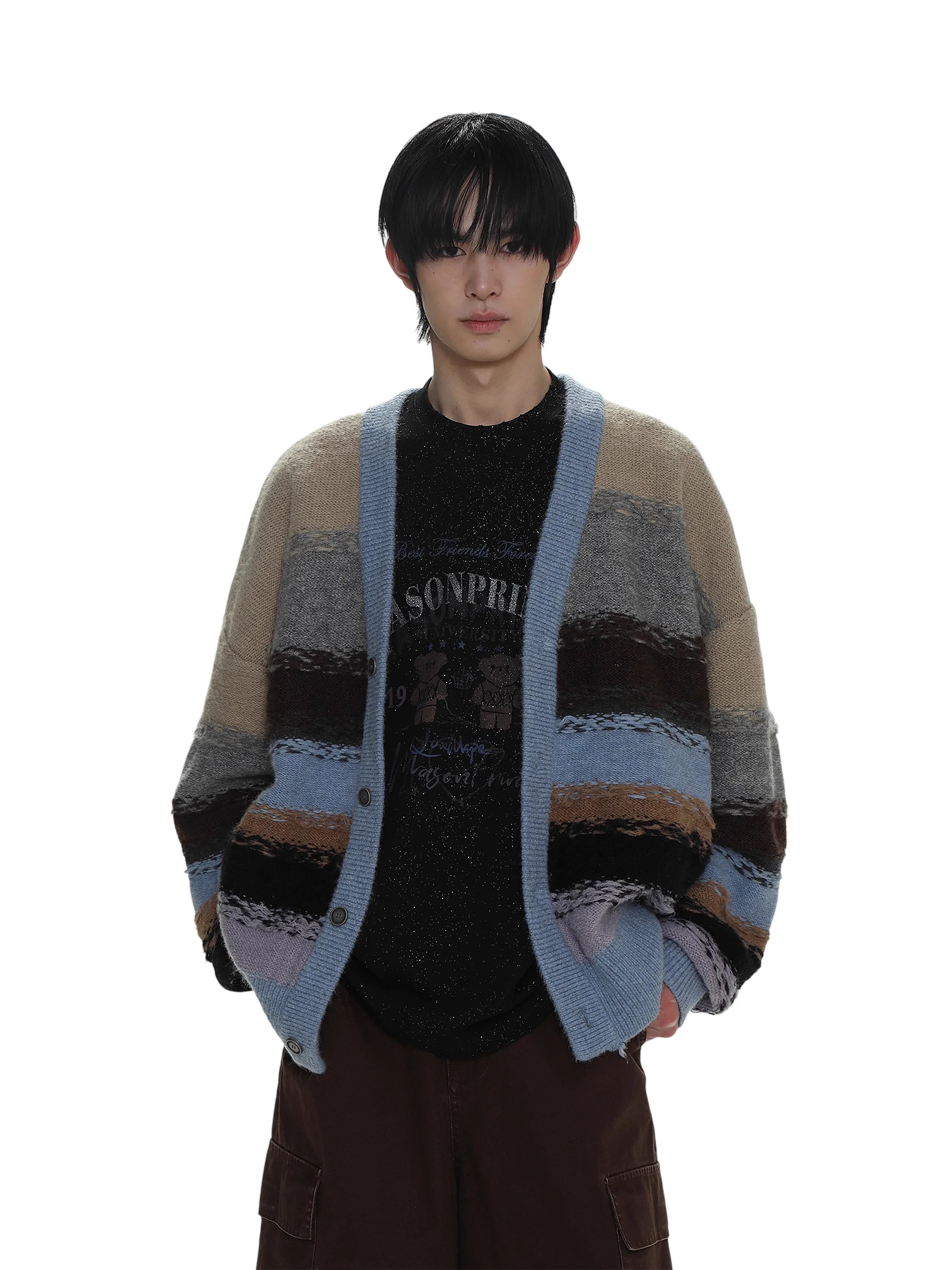 MASONPRINCE Multicolor Striped Jacquard Knit Cardigan