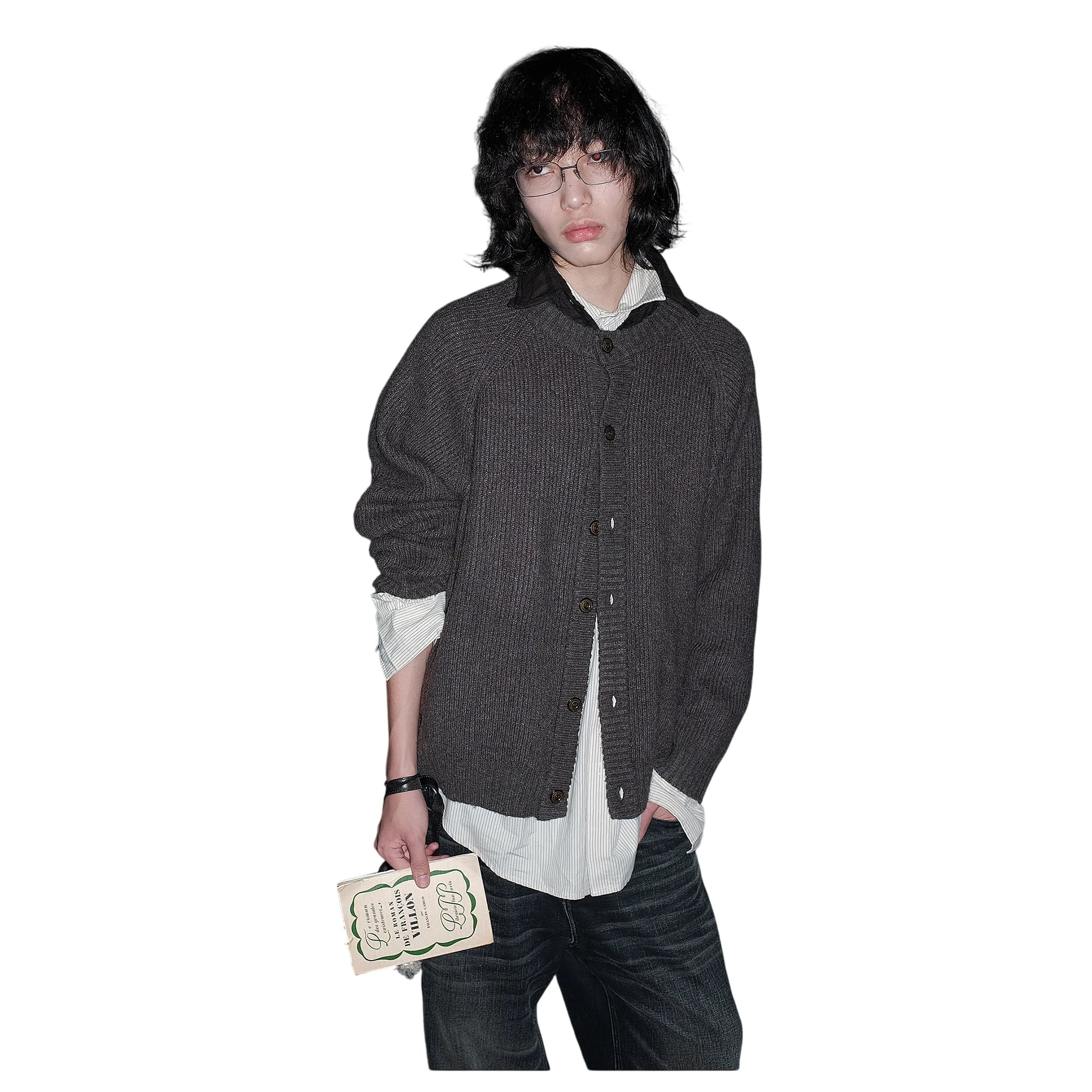 MASONPRINCE Vintage Herringbone Wool Cardigan Sweater
