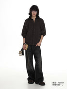 This vintage-inspired cardigan sweater features a classic crew neckline and a herringbone knit pattern crafted from stretch wool, offering both warmth and comfort. Designed for men, it is styled with dark buttons and layered over a white pinstriped shirt for a relaxed, yet refined look. Ideal for fall and winter, this piece pairs well with denim for casual outings.