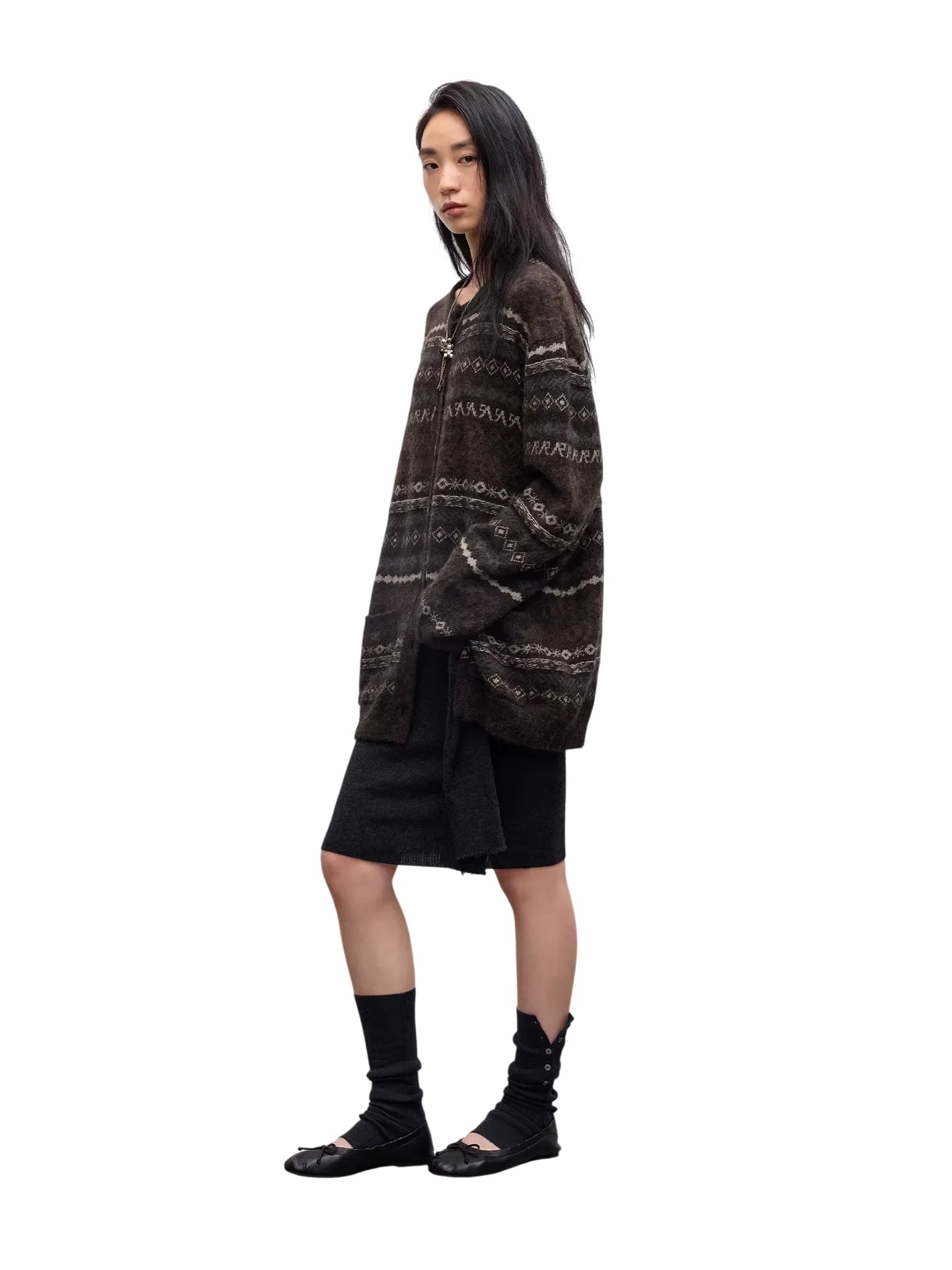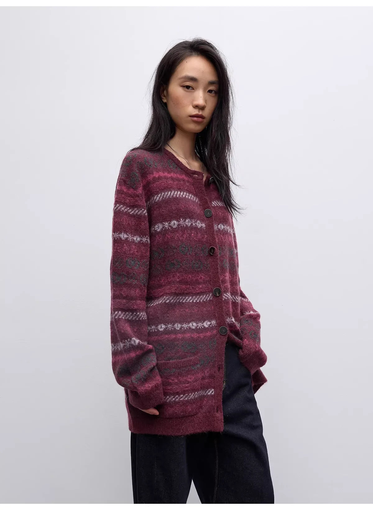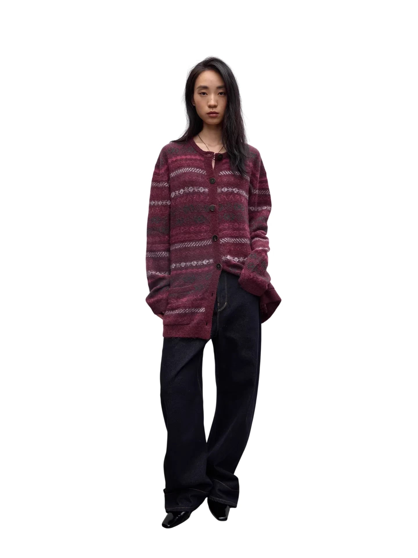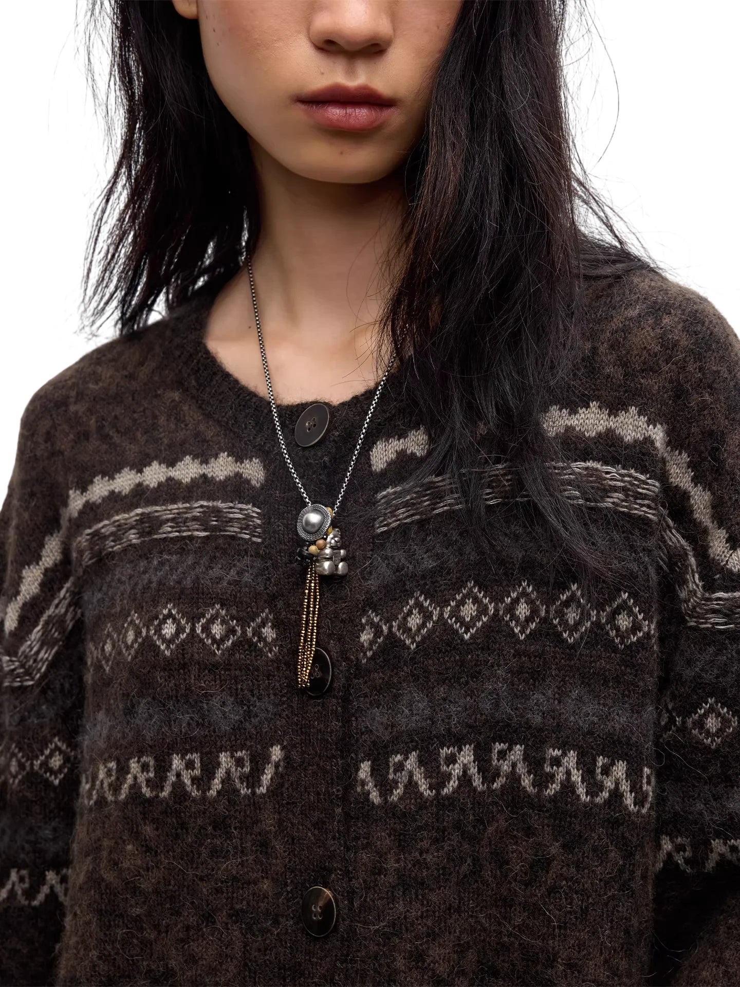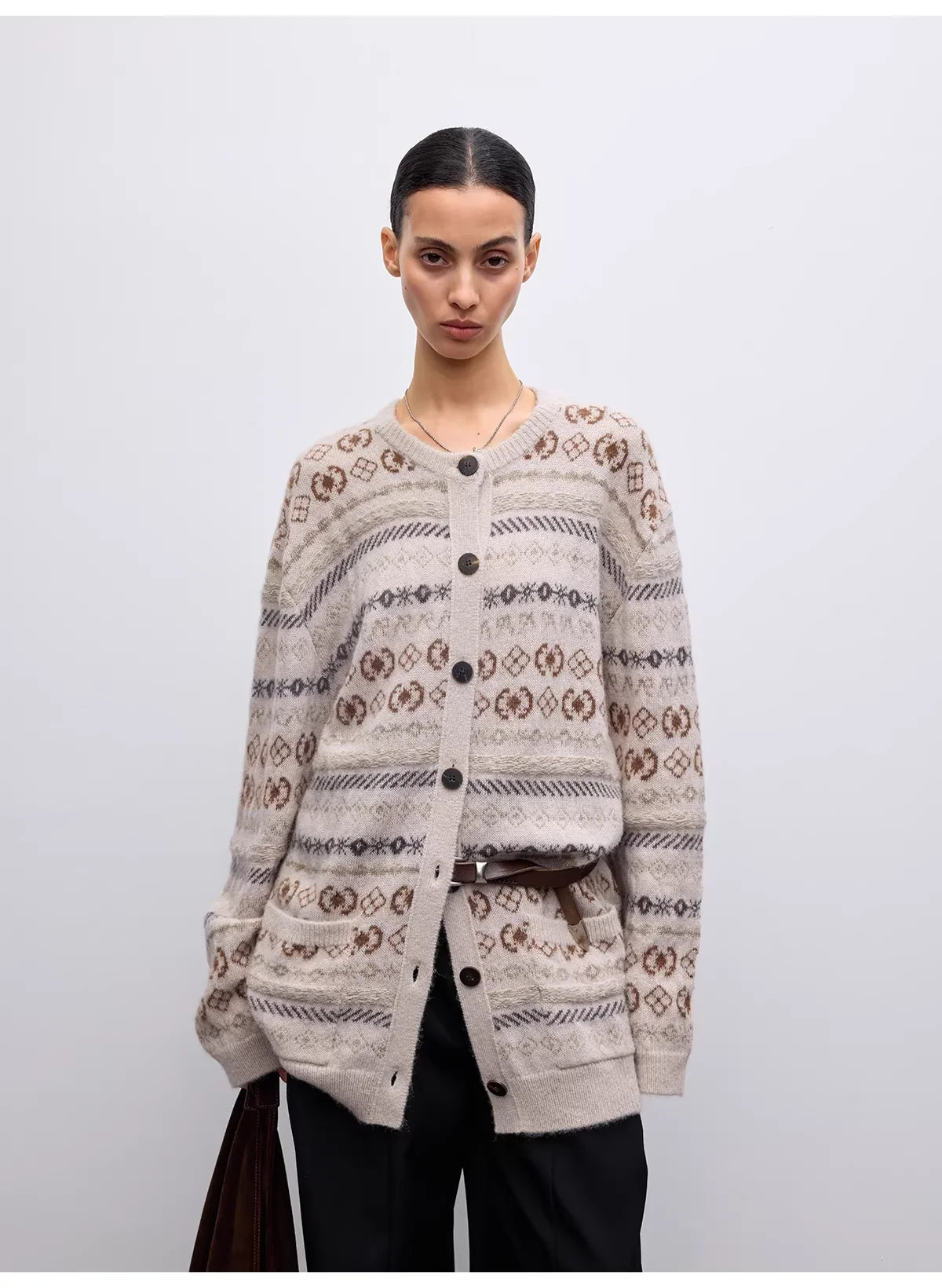 RandomPiece Fair Isle Lamb Wool and Camel Hair Knit Cardigan