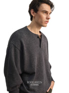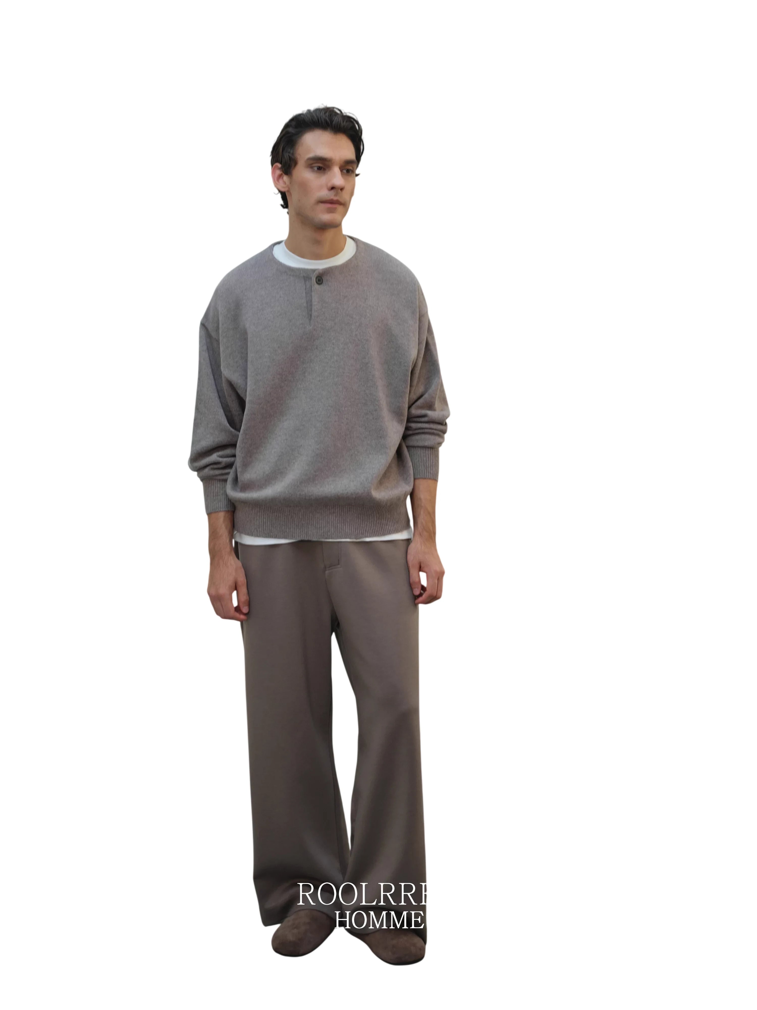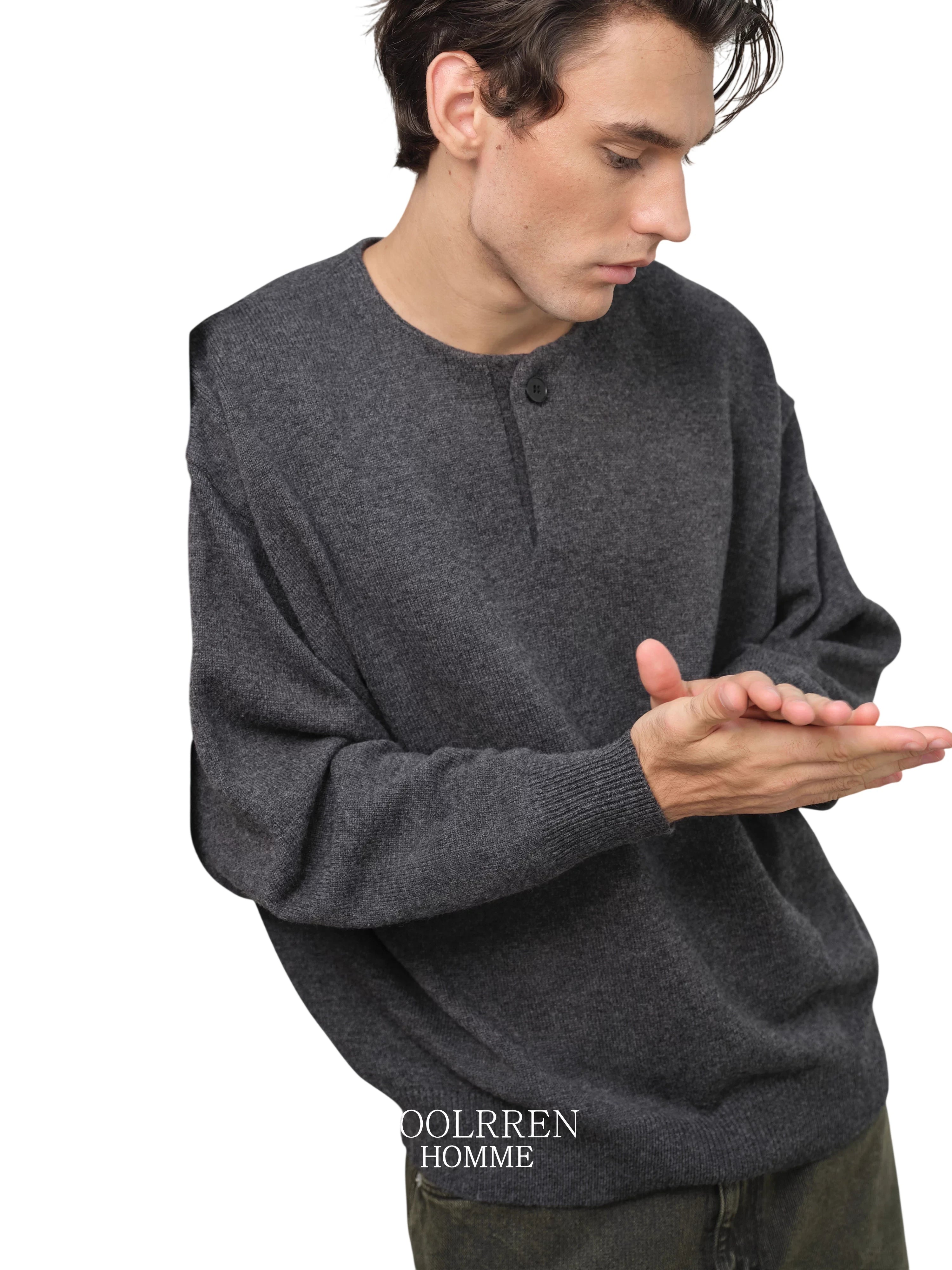 Roolrren homme Men's 100% Wool One-Button Boxy Fit Sweater