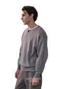 This men's sweater features a relaxed boxy fit and is crafted from 100% wool for superior warmth and comfort. Styled with a single-button detail at the collar, it offers a subtle nod to 90s-inspired fashion. The taupe color and minimalist design make it a versatile addition to any casual or smart-casual wardrobe. Perfect for layering, it pairs effortlessly with relaxed trousers or jeans for a laid-back, contemporary look.