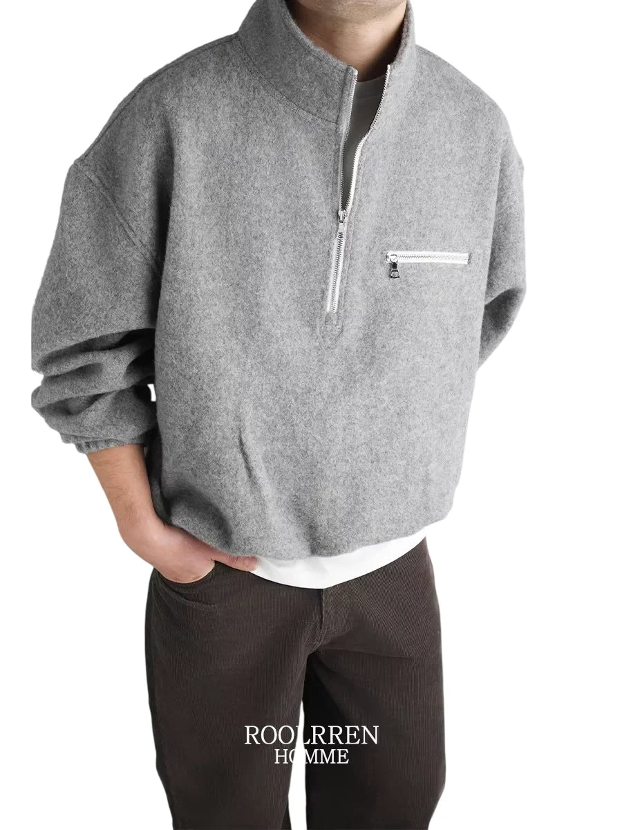Roolrren homme Men's Wool Fleece Quarter-Zip Pullover Sweater