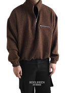 Stay warm and stylish in this men's wool fleece pullover sweater, crafted from premium New Zealand wool. Designed with a practical quarter-zip closure at the neckline and an additional zippered chest pocket, this sweater combines functional elements with refined tailoring. The high stand collar offers extra comfort and protection against the cold, making it ideal for cooler seasons. Offered in versatile tones such as gray and dark brown, this piece is perfect for layering or as a standalone statement.