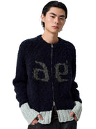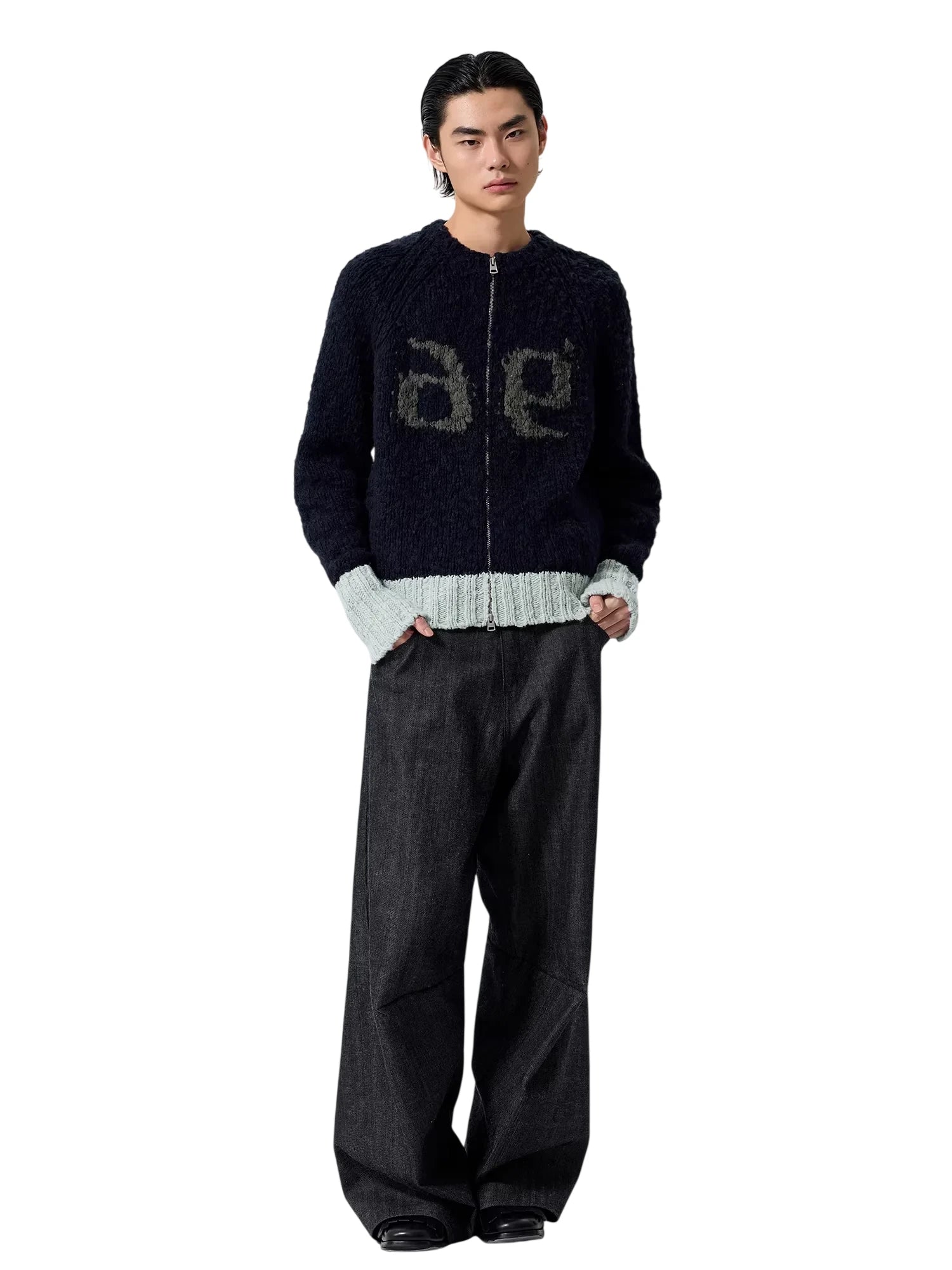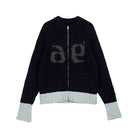 Simple Project Colorblock Wool Zip-Up Cardigan with Graphic Detail