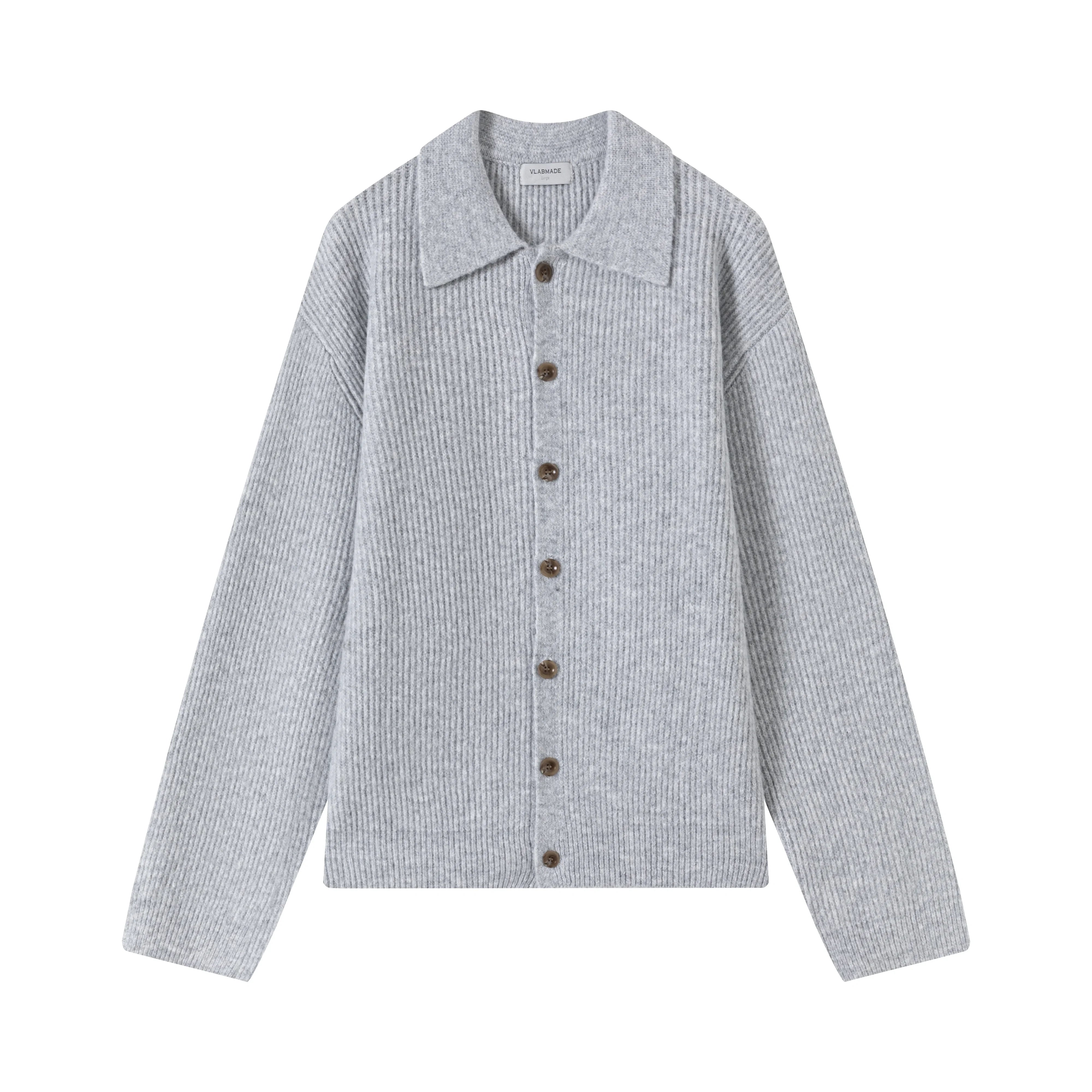 VLABMADE Ribbed Wool Blend Button-Up Polo Collar Cardigan