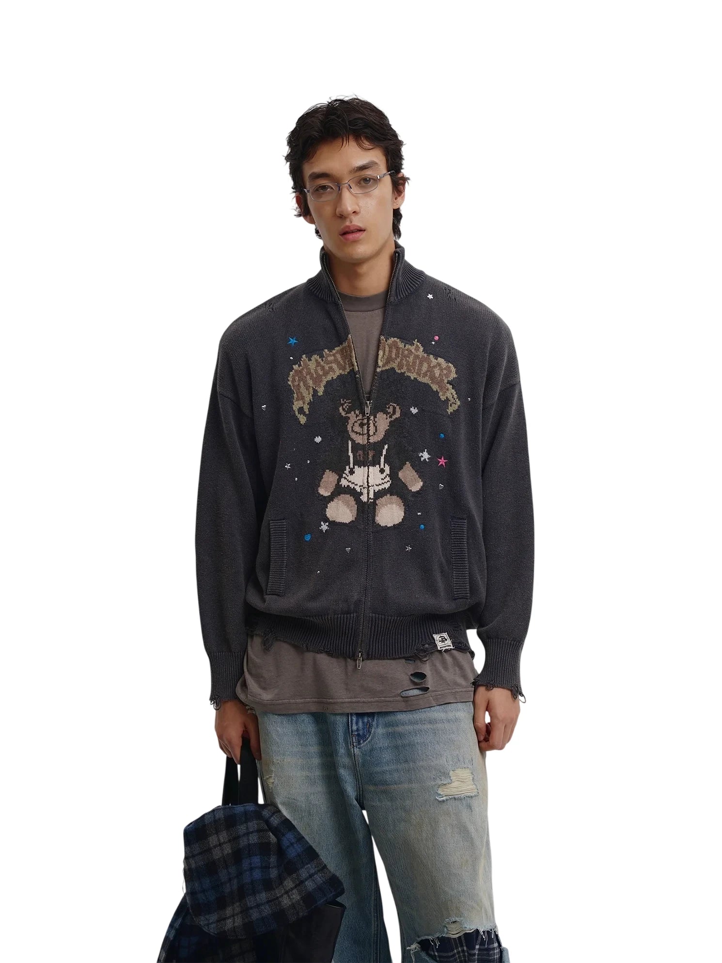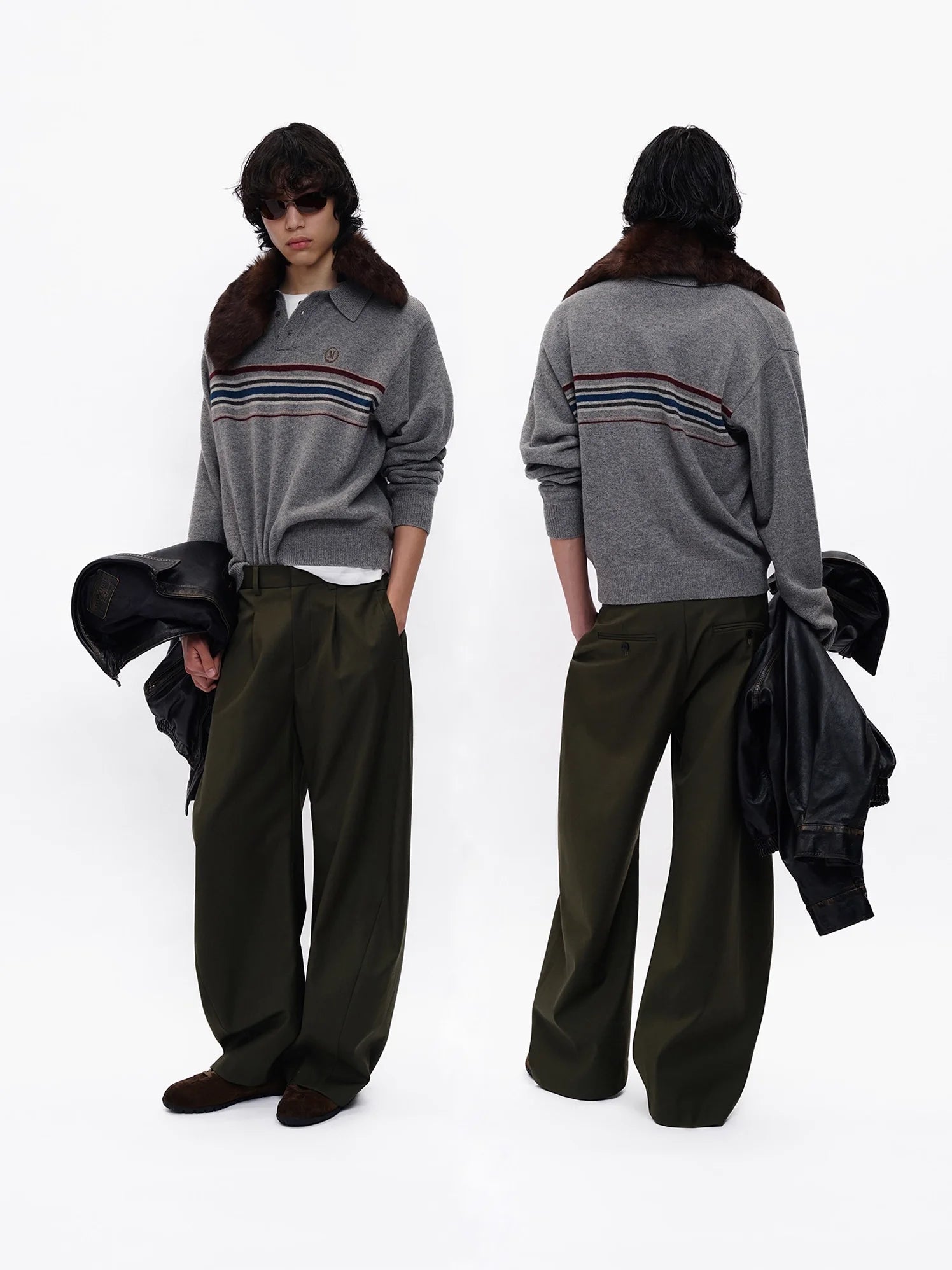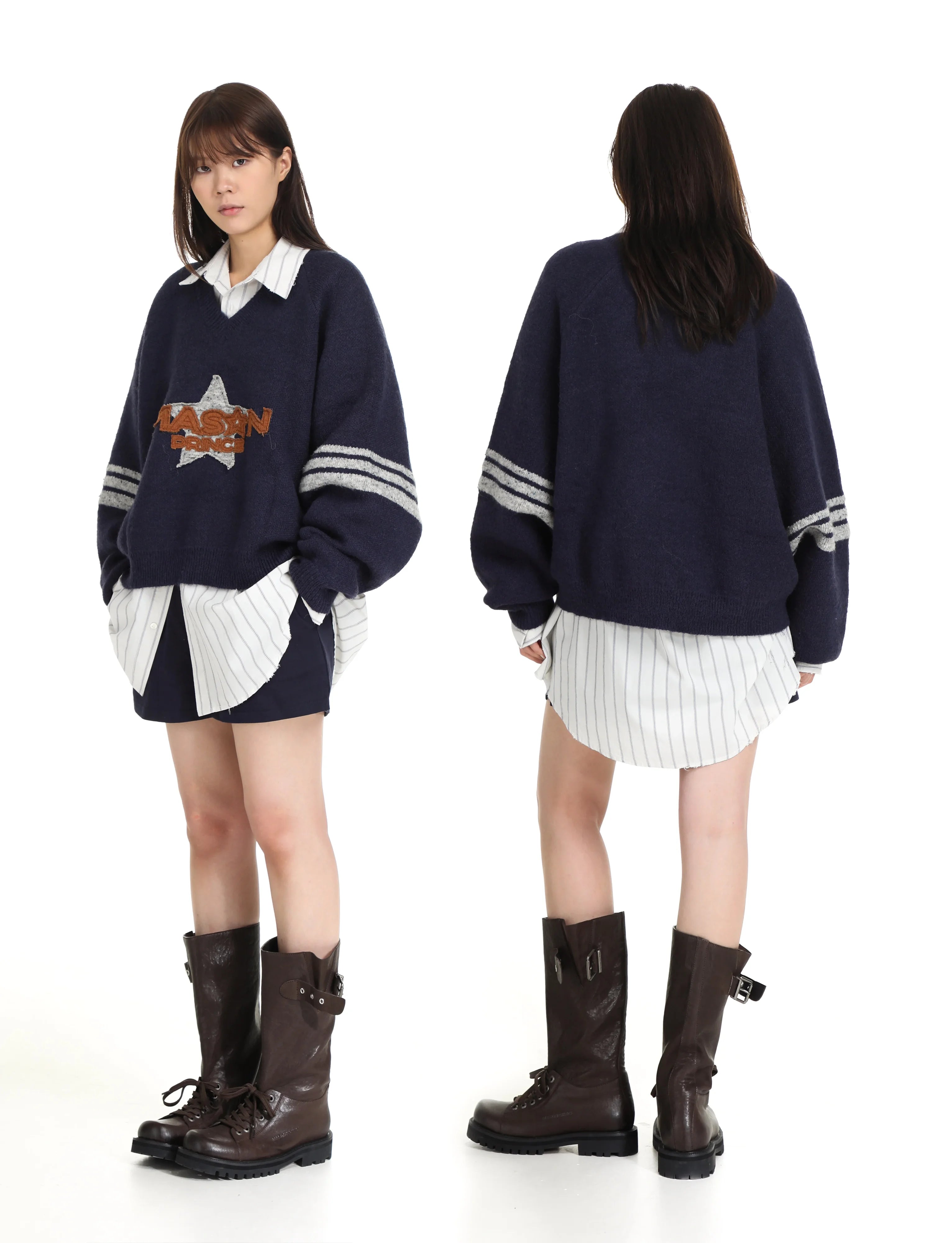 MASONPRINCE Autumn Wool Two-Tone Zip-Up Cardigan Set