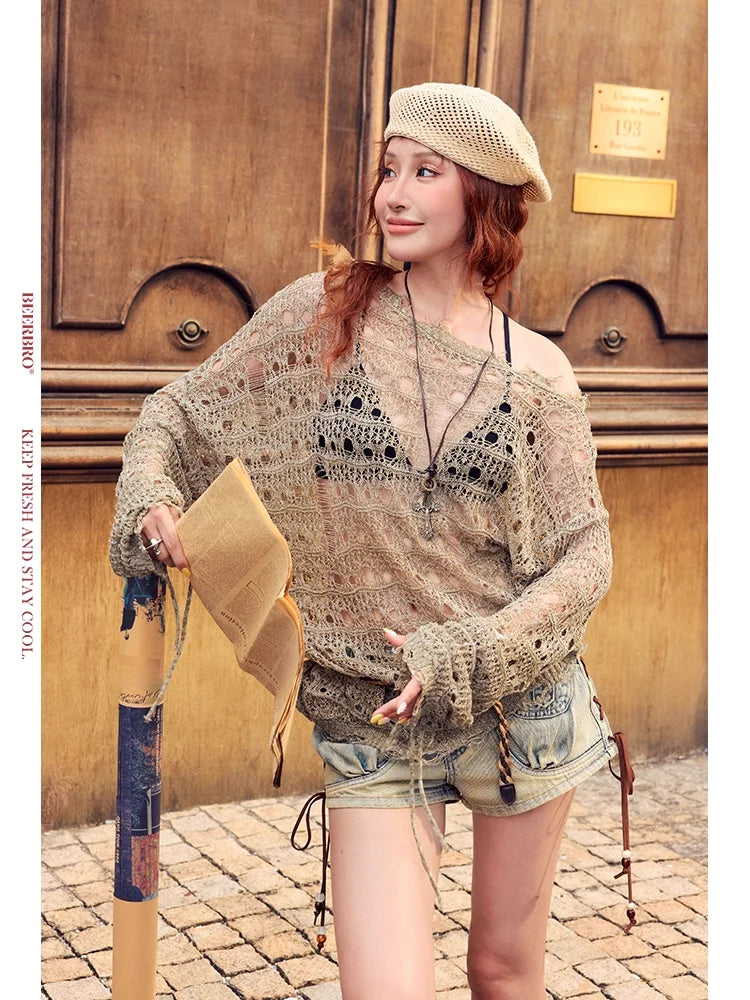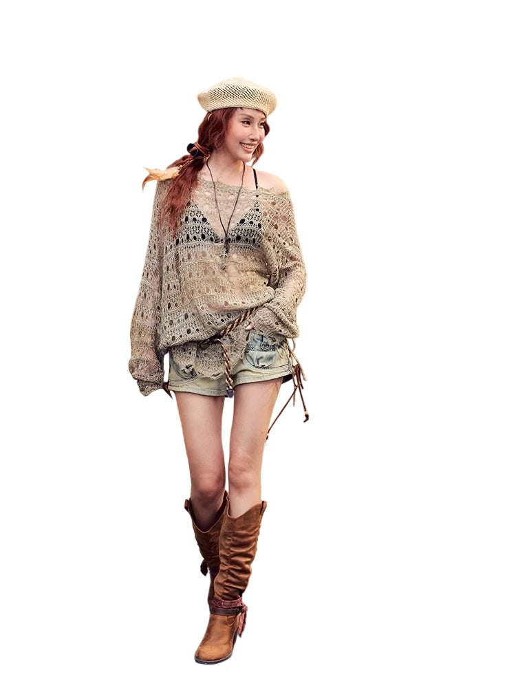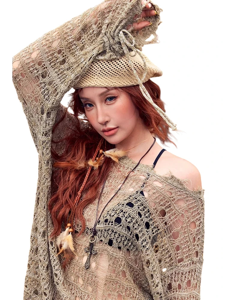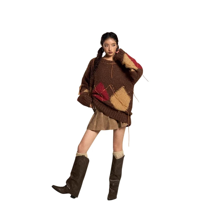 BeerBro Off-Shoulder Colorblock Faux Mink Knit Sweater