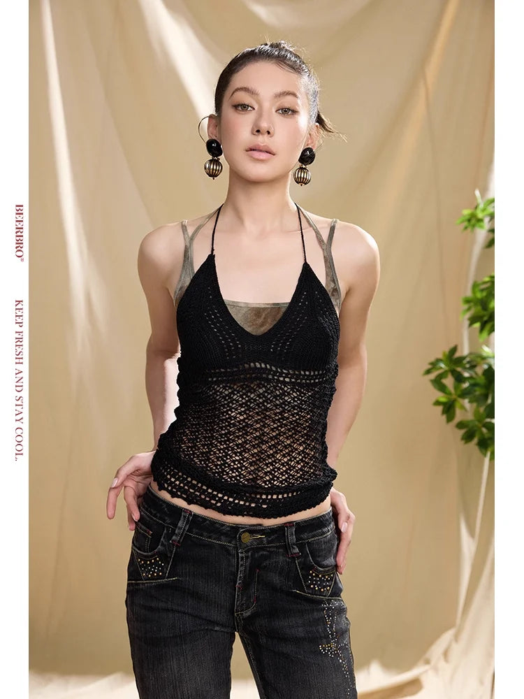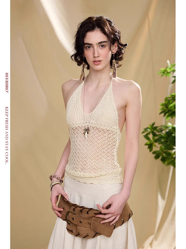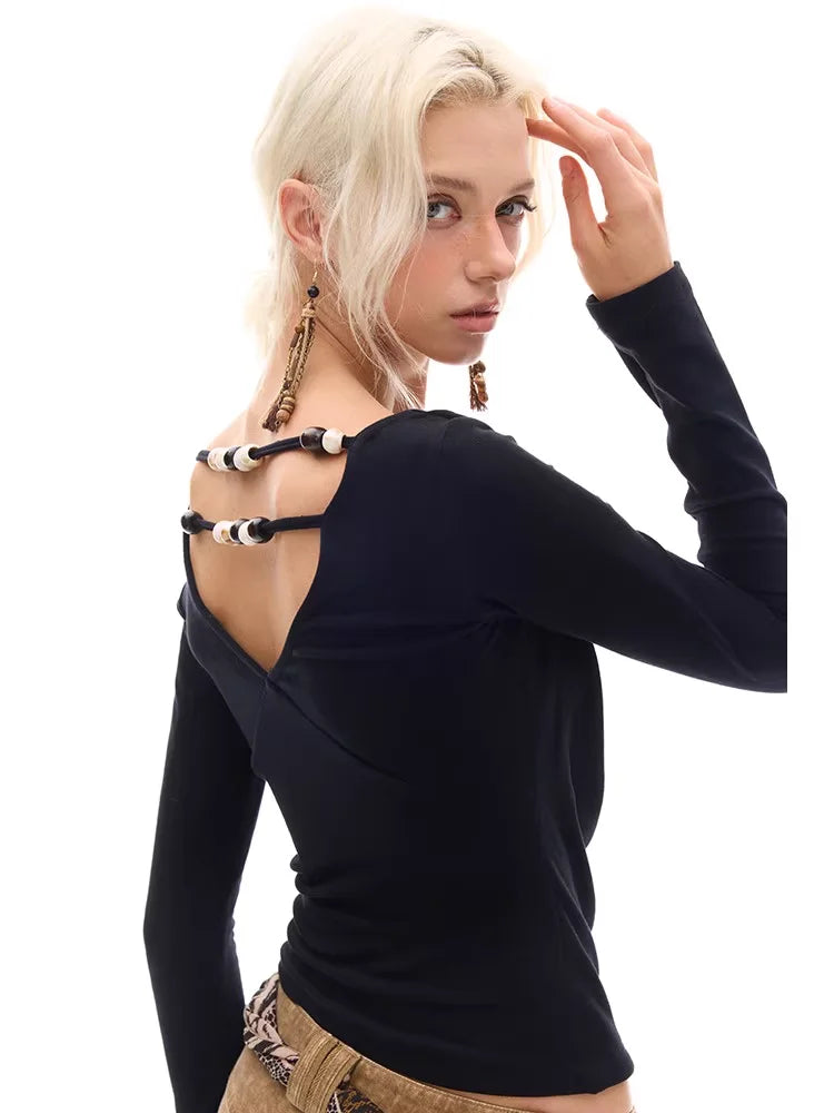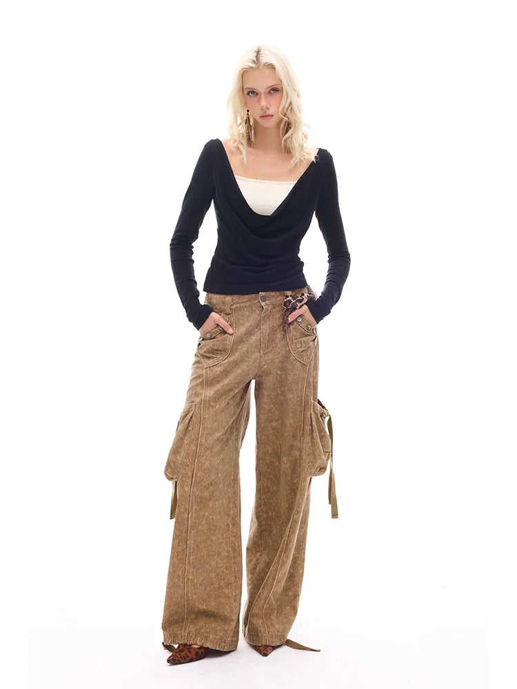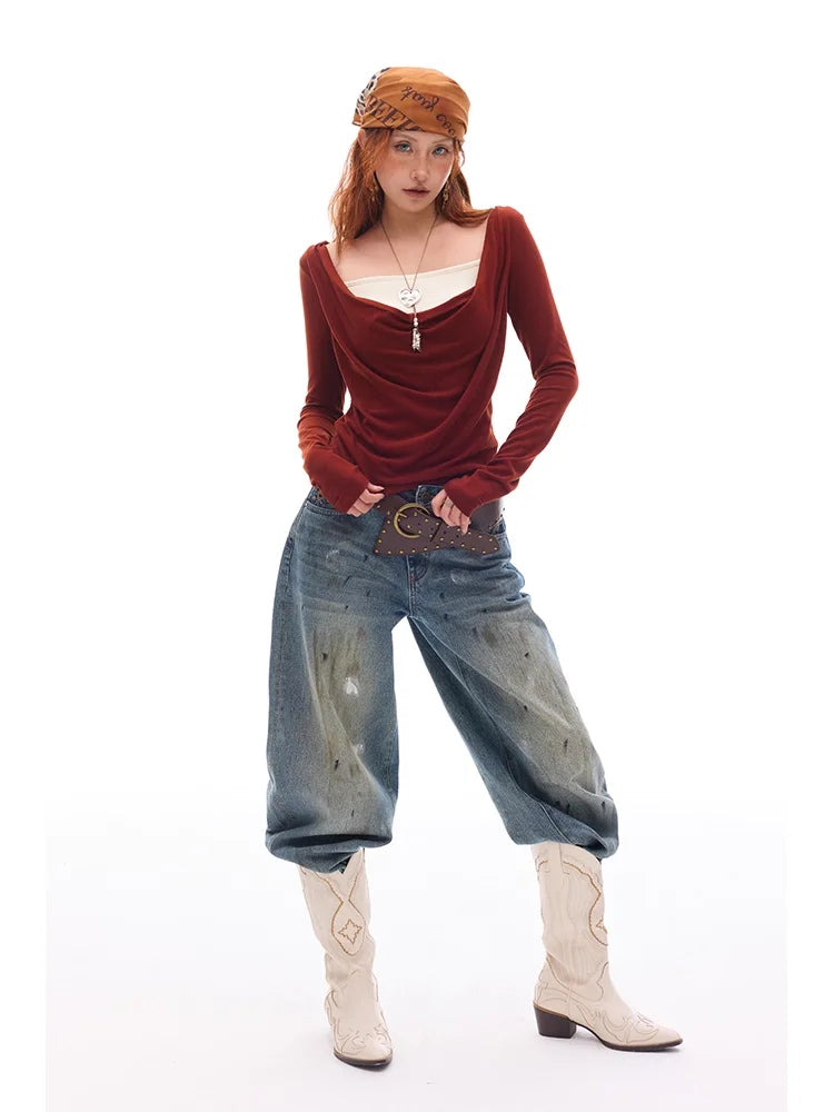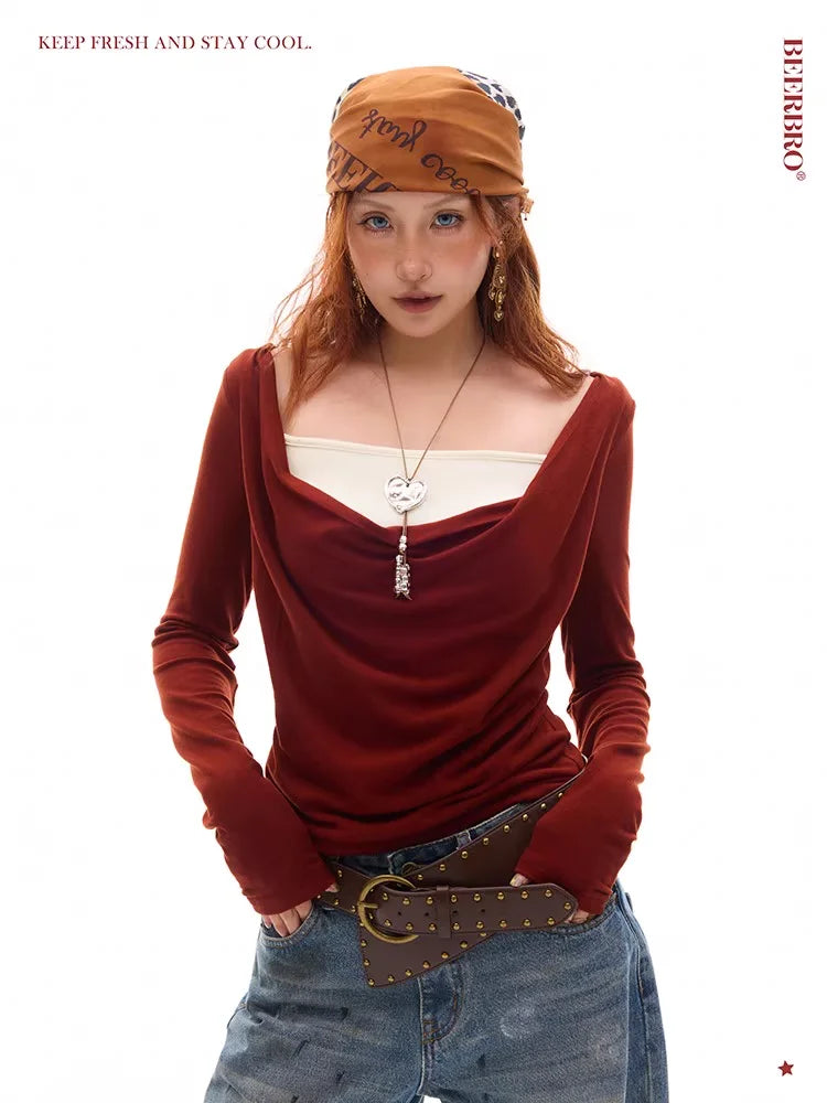 BeerBro Women's Beaded Faux Two-Piece Cowl Neck Knit Top with Built-in Bra