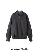 ACSENSE STUDIO Reversible Stand Collar Jacket with Plaid Lining
