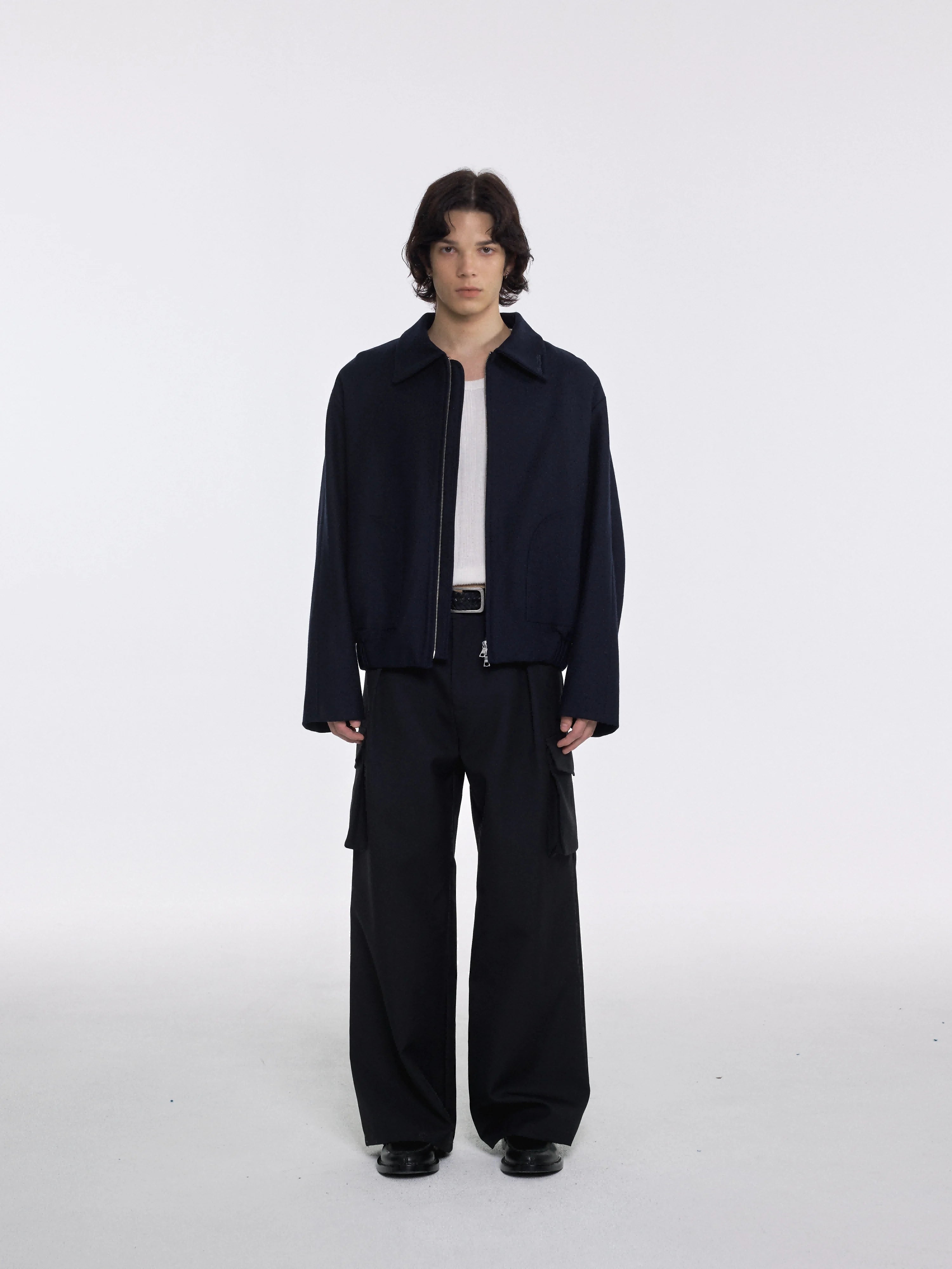 AFterTaste Navy Wool Blend Zip-Up Jacket