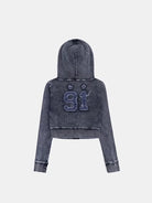 BADSEED Slim Fit Hooded Denim Jacket - Blue and Black
