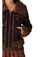 Stay stylish and cozy this winter with this women's thickened corduroy jacket. Designed with a plush faux fur trim on the collar, cuffs, and hem, it offers both warmth and seasonal charm. The waist-cinching design creates a flattering silhouette, while decorative buckles and a zipper closure add practical style. Embroidered chest detailing adds a unique touch, making it perfect for festive and casual winter outings.