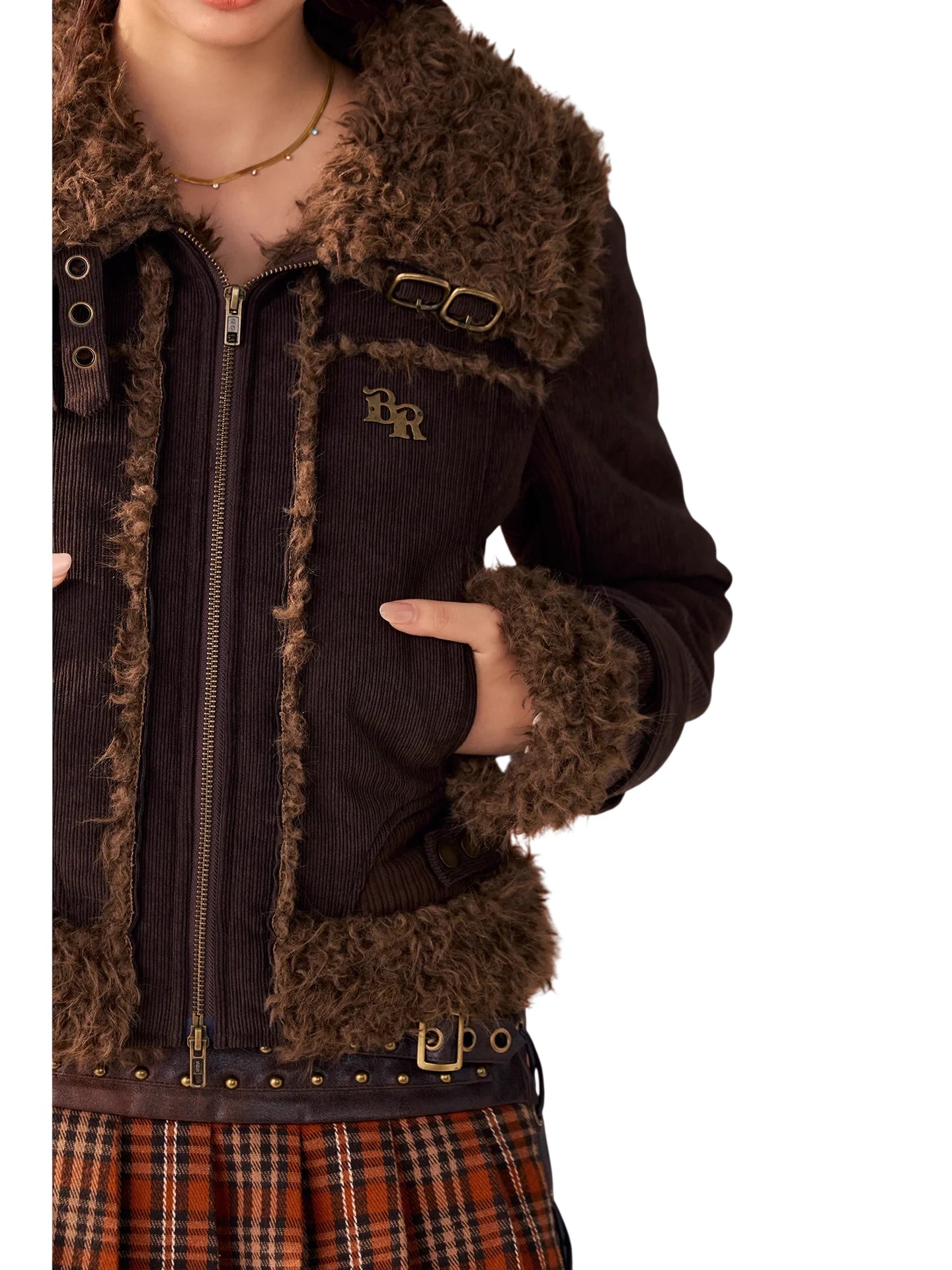 BeerBro Women's Warm Corduroy Jacket with Faux Fur Collar