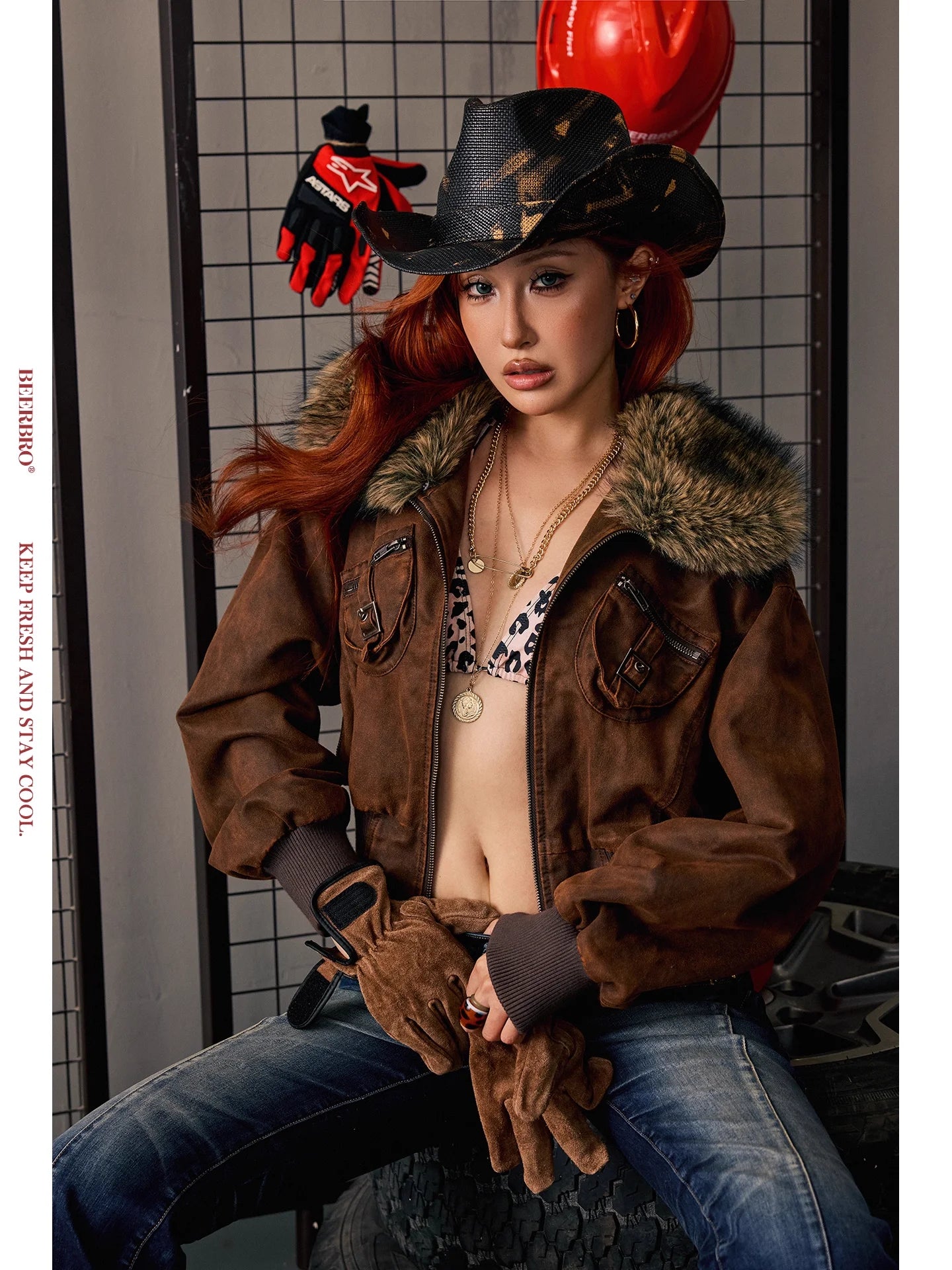 Embrace fall and winter in style with this washed short jacket designed for women. Featuring a detachable faux fur collar, the jacket combines practicality with a rugged yet fashionable look. Crafted in a rich brown suede-like fabric, it includes two chest flap pockets with buttons, ribbed cuffs for added structure, and a fitted silhouette ideal for layering.
