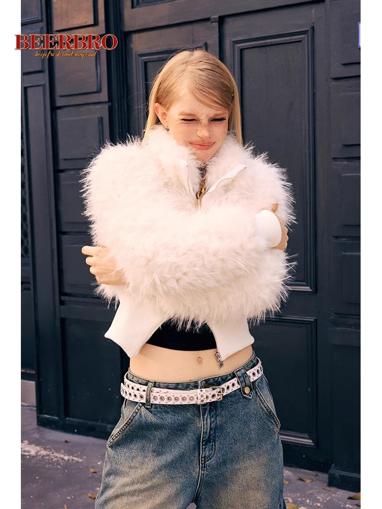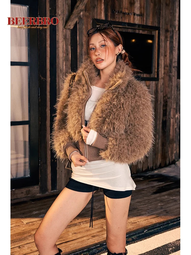 BeerBro Women's Winter Faux Fur Vest with Waist-Cinching Design