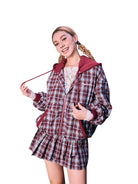 BeerBro Y2K Plaid Hooded Cotton Jacket and Pleated A-Line Skirt Set