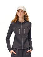Elevate your casual athletic wear with this oversized zip-up sports jacket designed for women. Crafted with a special mercerized air layer fabric, this jacket offers a sleek yet relaxed silhouette ideal for spring and autumn. It features a stand collar, vertical chest zippers, and subtle reflective or logo accents near the pockets, combining functionality with minimalist style. Pair it effortlessly with wide-leg pants or your favorite activewear for a clean, sporty look.