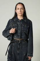 Elevate your casual style with this retro-inspired men's denim jacket. Designed in a dark slub denim, this short jacket features a structured silhouette with buttoned chest pockets, a pointed collar, and metal detailing for an edgy, modern feel. Perfect for layering in autumn, it's an ideal choice for fashion-forward looks or coordinated couple outfits.