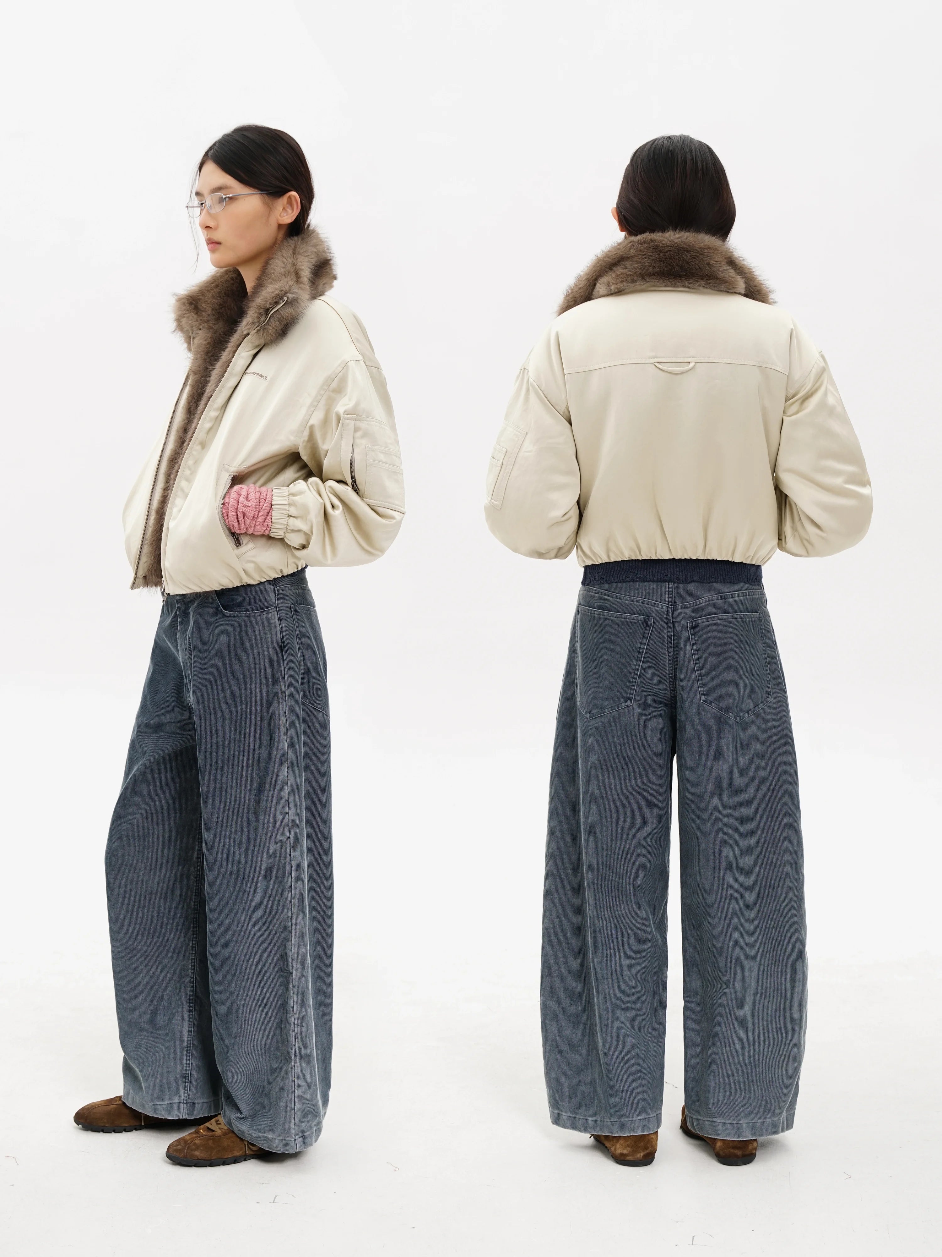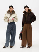 MASONPRINCE Men's Winter Fur Collar Cocoon Bomber Jacket