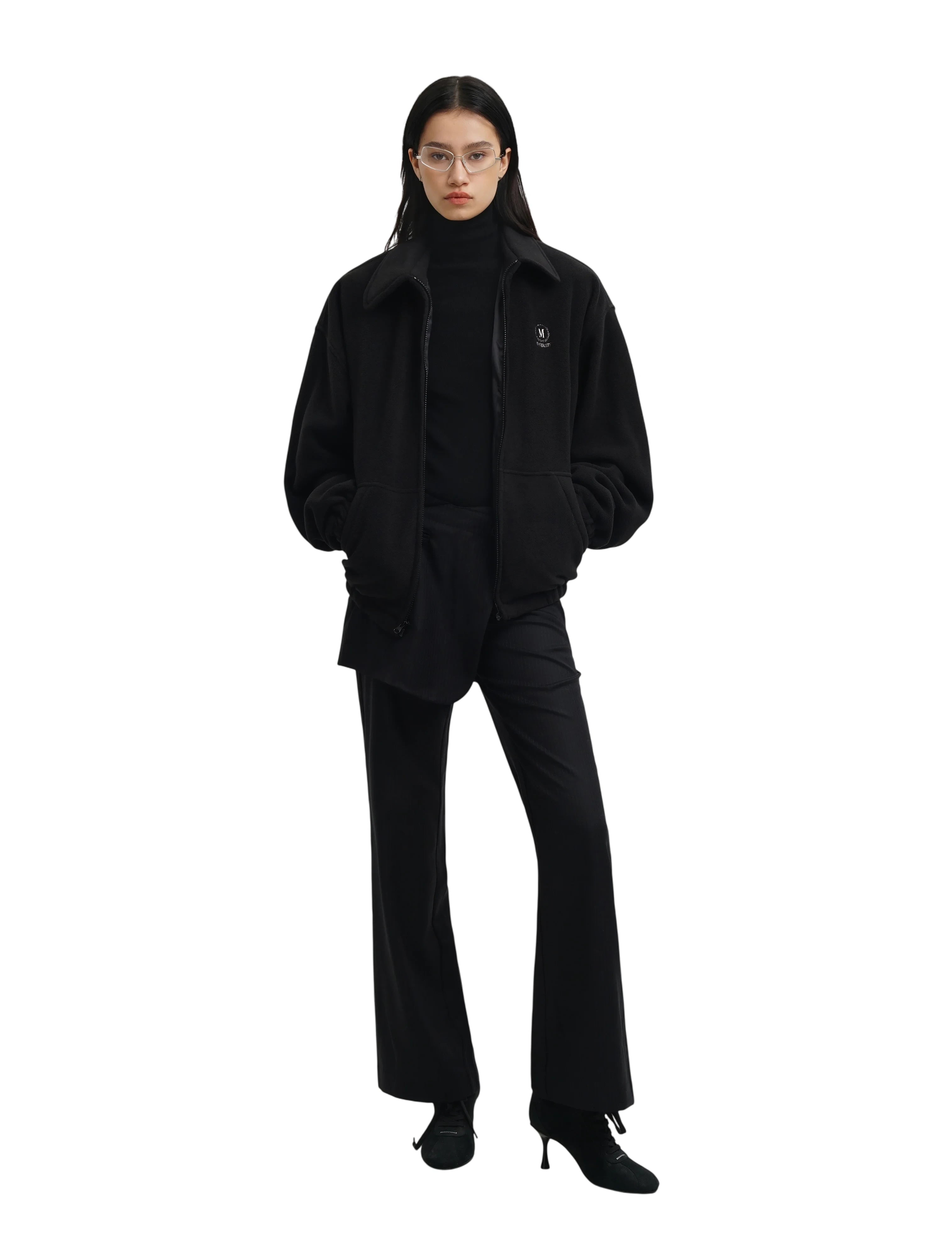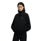 This women's oversized fleece jacket features a cozy, boxy-fit design with a high collar, elastic cuffs and hem for added comfort. The front zip closure and functional side pockets enhance practicality, while the delicate embroidered "M" logo on the chest adds a refined touch. Perfect for layering in cool weather, this jacket offers both warmth and modern style.