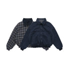 Elevate your outerwear with this men's reversible Harrington jacket, designed in a timeless vintage style. Crafted from breathable cotton fabric, this medium-weight jacket provides both comfort and versatility for cool weather. One side features a classic solid navy design with a zip-up front, elasticated cuffs and hem, slanted pockets, and a subtle chest patch. The reverse displays a modern plaid pattern in blue and grey tones, offering a more laid-back, casual look.