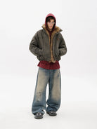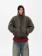 Stay warm and stylish with this women's cropped winter jacket, crafted from durable canvas fabric in a muted olive-green shade. Designed for both functionality and fashion, it features a front zip with snap-button closures, two slanted front pockets, and an elasticated hem for a flattering fit.