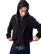 Roolrren homme Men's Casual Spliced Knit Zip-Up Hoodie Jacket