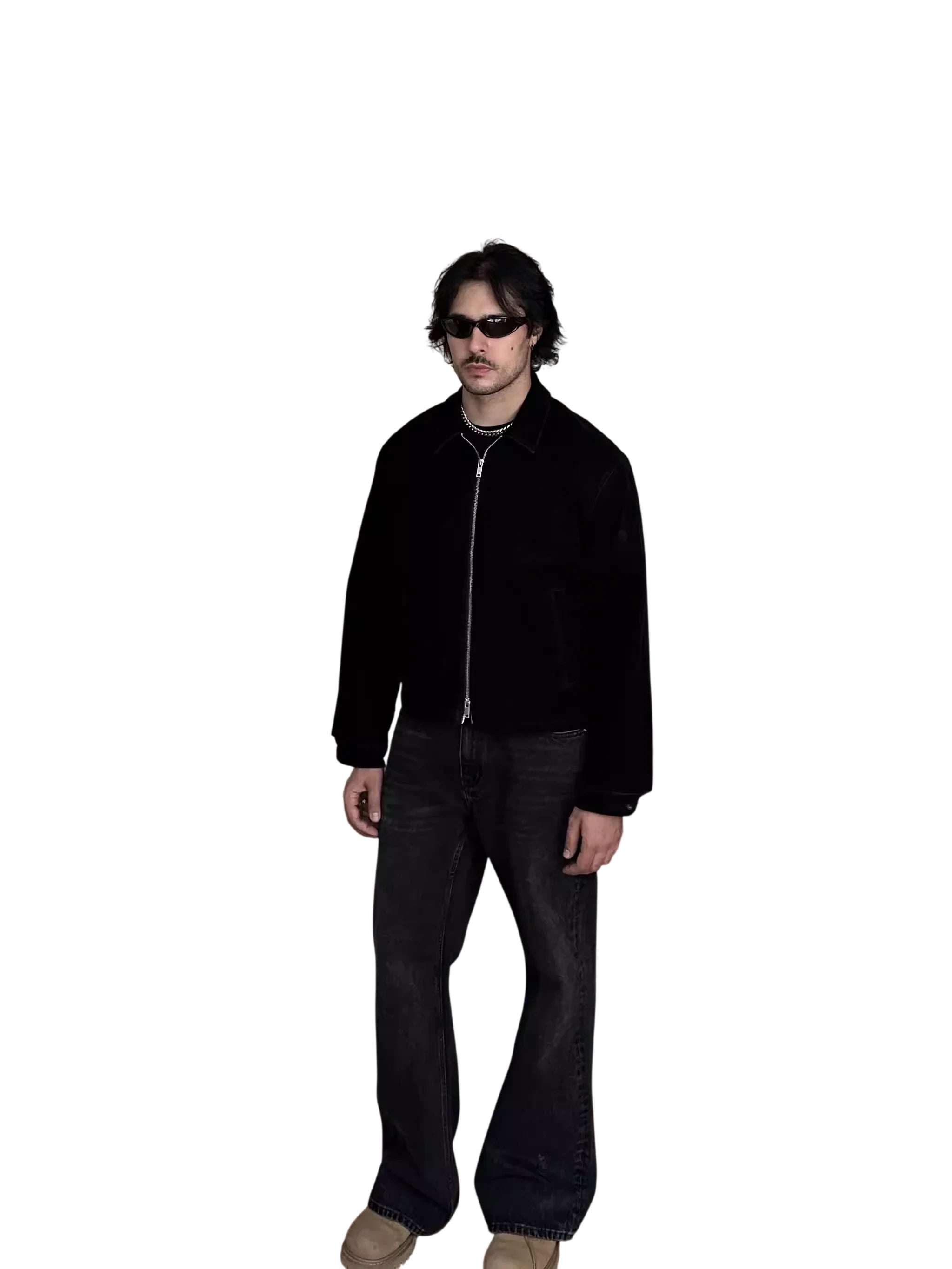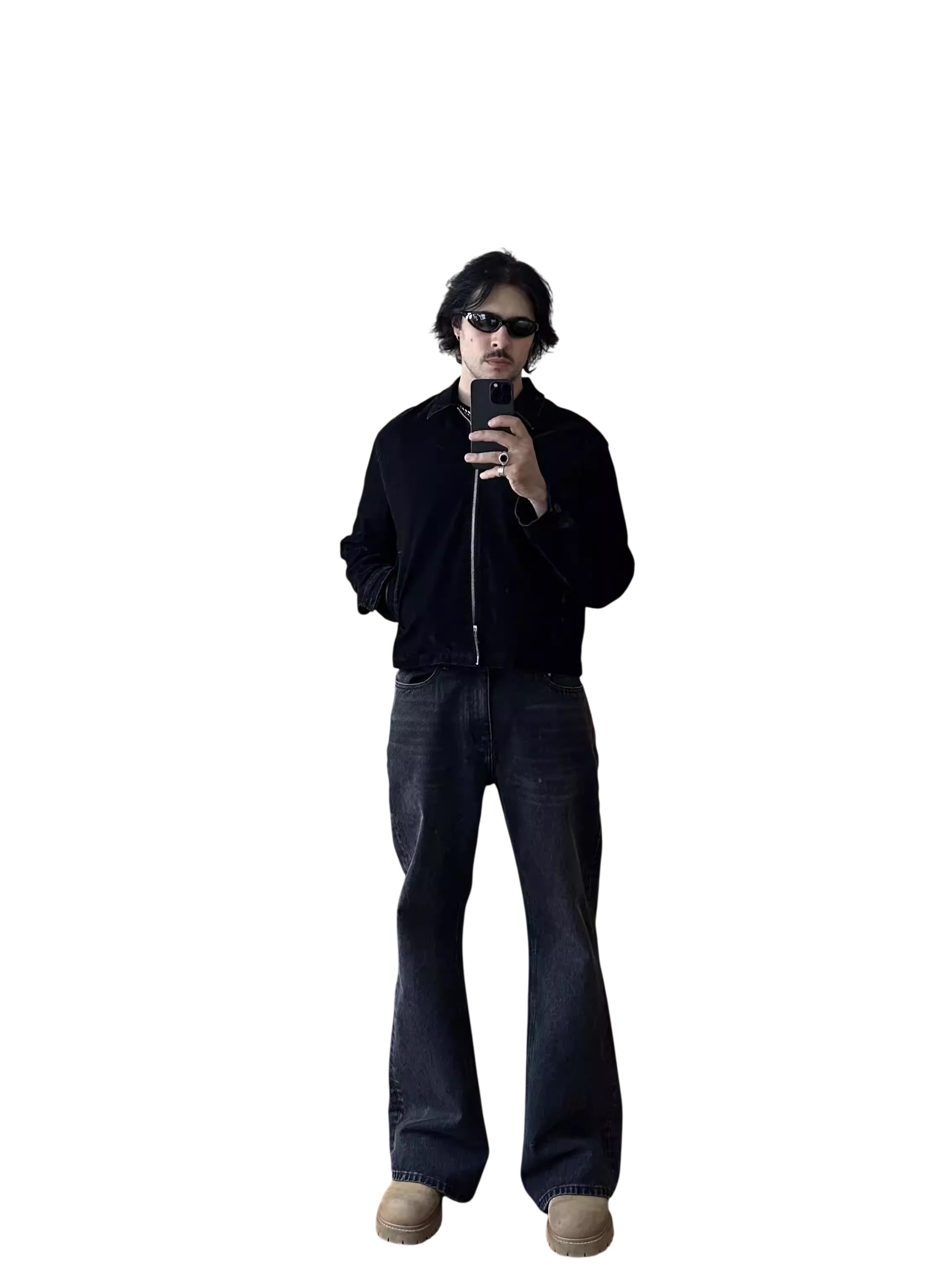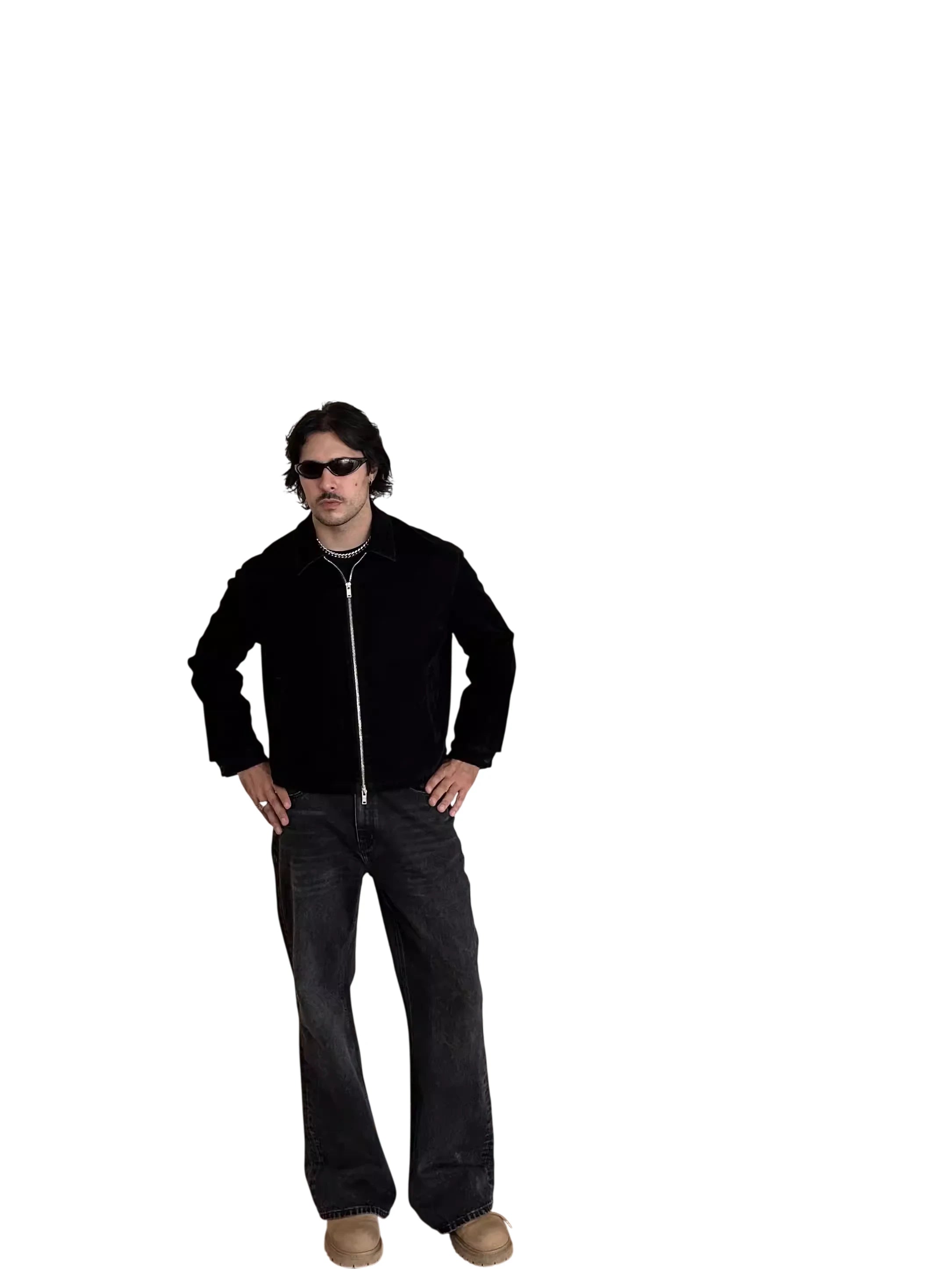 Elevate your outerwear with this men's zip-up jacket, crafted from rich flocked velvet corduroy for a refined yet textured finish. Designed with a classic collar and a full front zipper, it features clean vertical slit pockets for both function and style. With its sleek silhouette and modern appeal, this jacket is perfect for adding a sophisticated touch to your contemporary wardrobe.