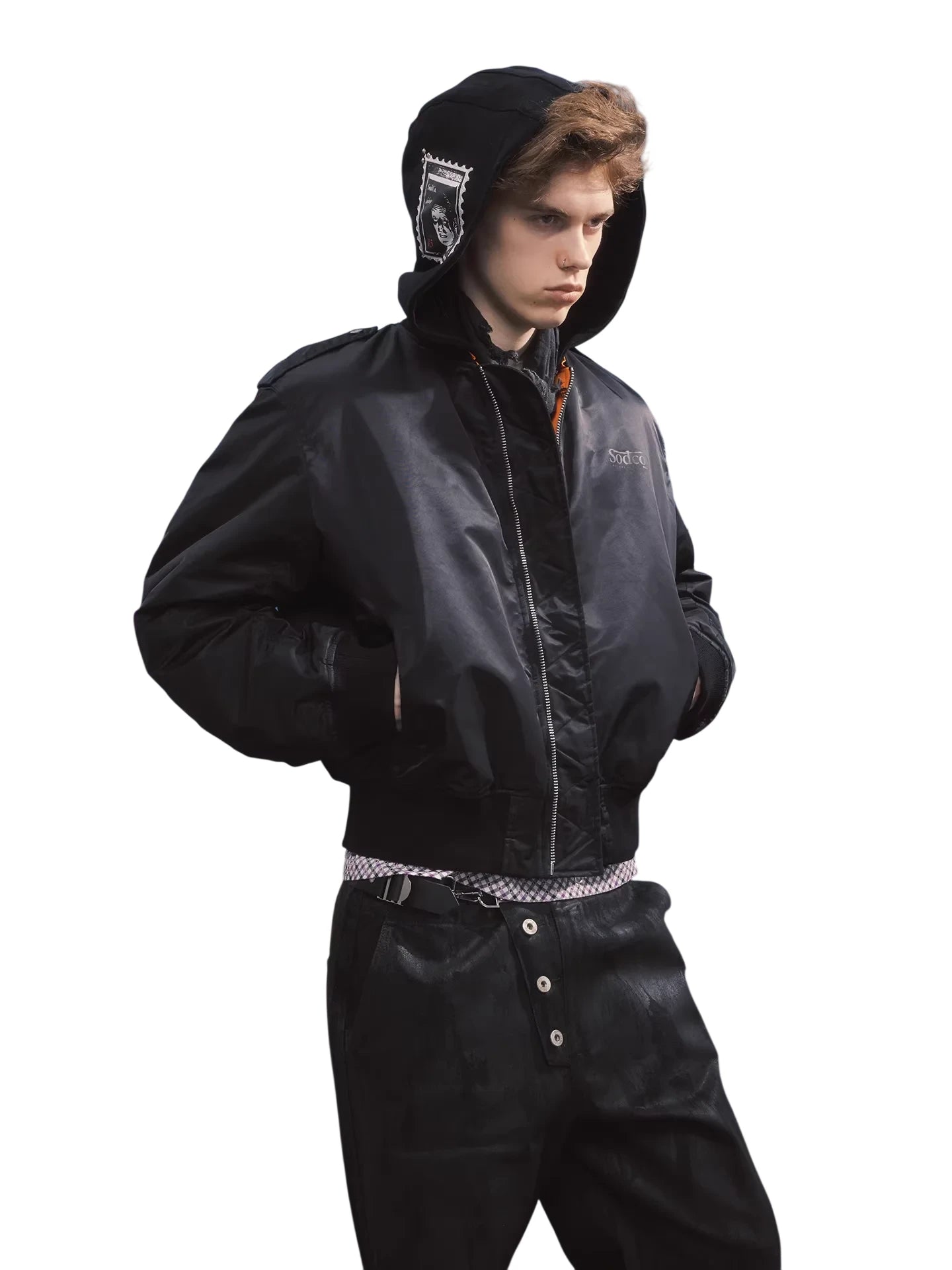 SOD Online Store Men's Black Hooded Bomber Jacket with Orange Lining