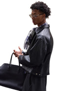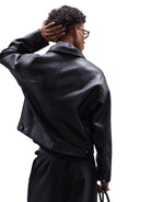 VLABMADE Matte Textured Faux Leather Short Jacket with Striped Lining